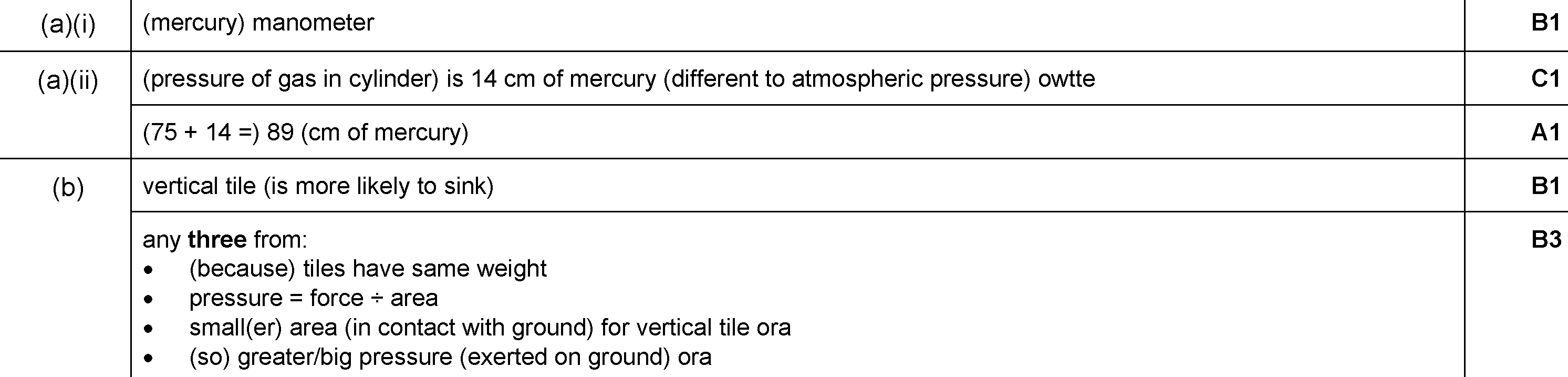 (a) State whether the pressure of the gas in the container is greater than, the same as, or less than the pressure of the atmosphere.....................