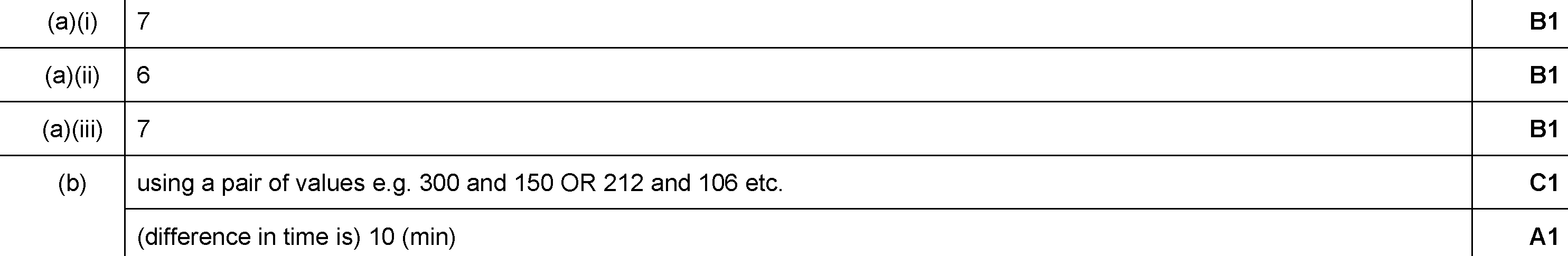 (a) Complete the plot of the decay curve, for times up to $t = 12$ minutes. Draw the best curve through your points. [3](b) From your graph find:(i) t...