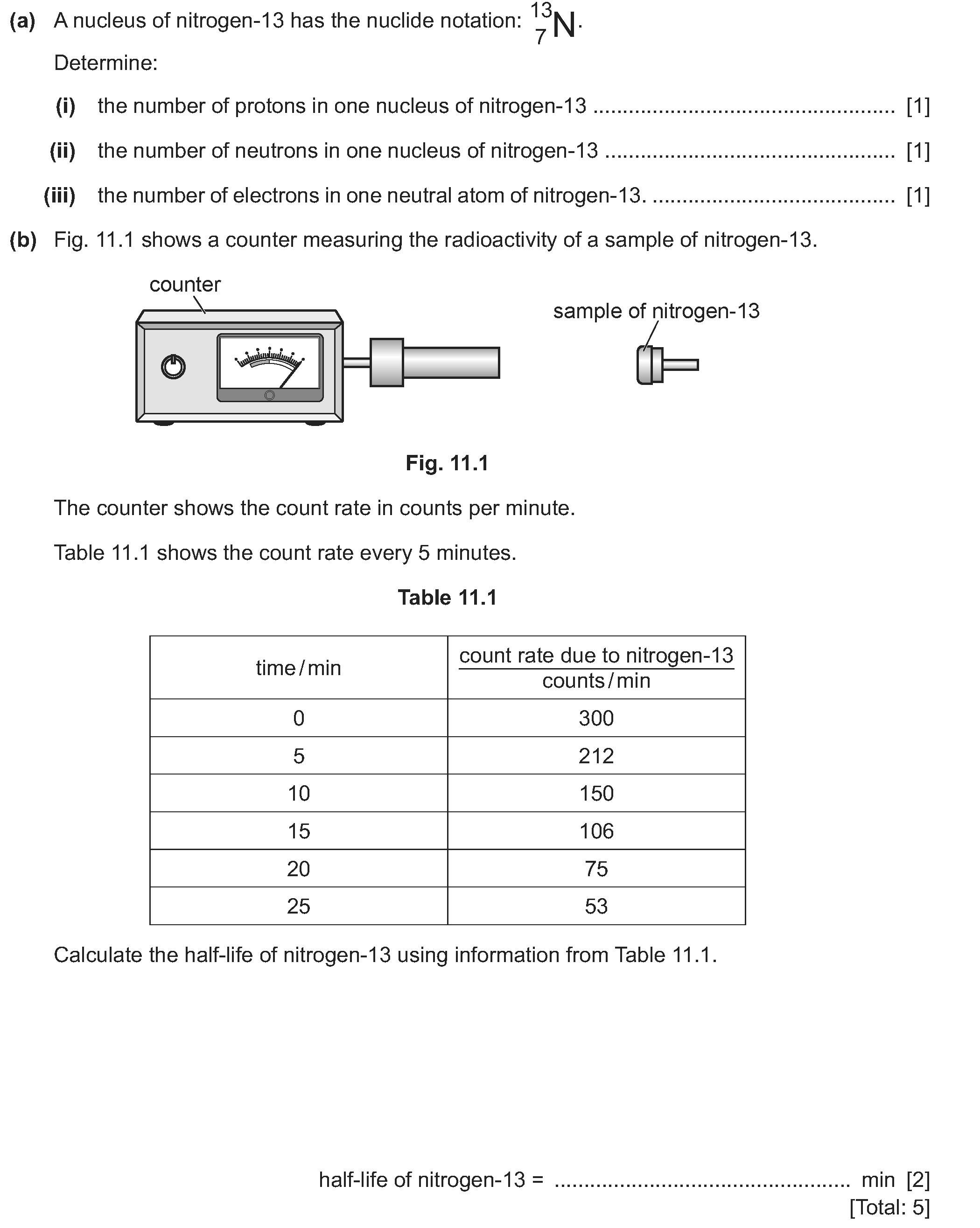 (a) Complete the following definition of radioactive half-life.The half-life of a radioactive substance is the time taken for ...........................