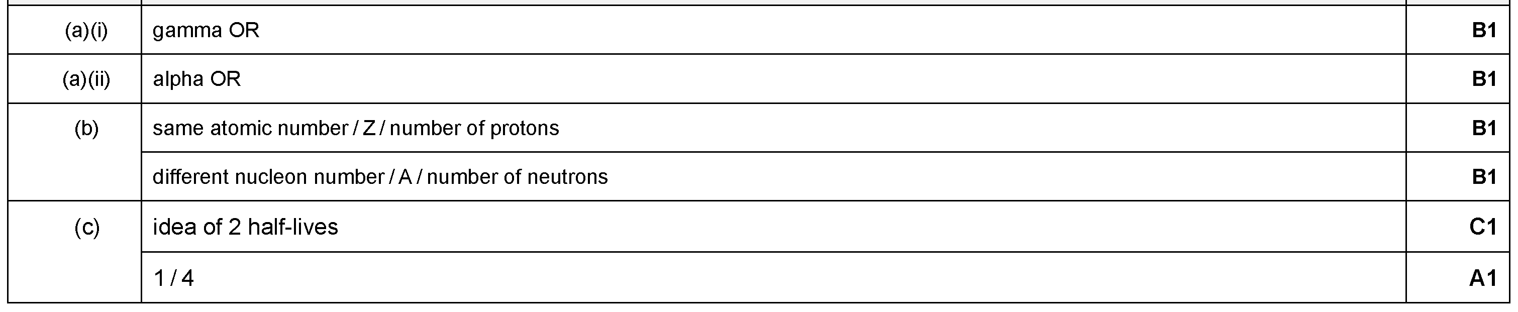 The table below gives details about some radioactive substances.[Table_1](a) Which of these substances has the greatest number of particles in the nuc...