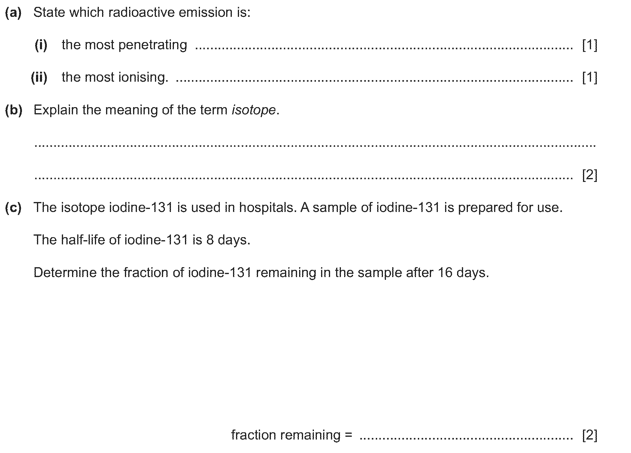 (a) Complete the following definition of radioactive half-life.The half-life of a radioactive substance is the time taken for ...........................