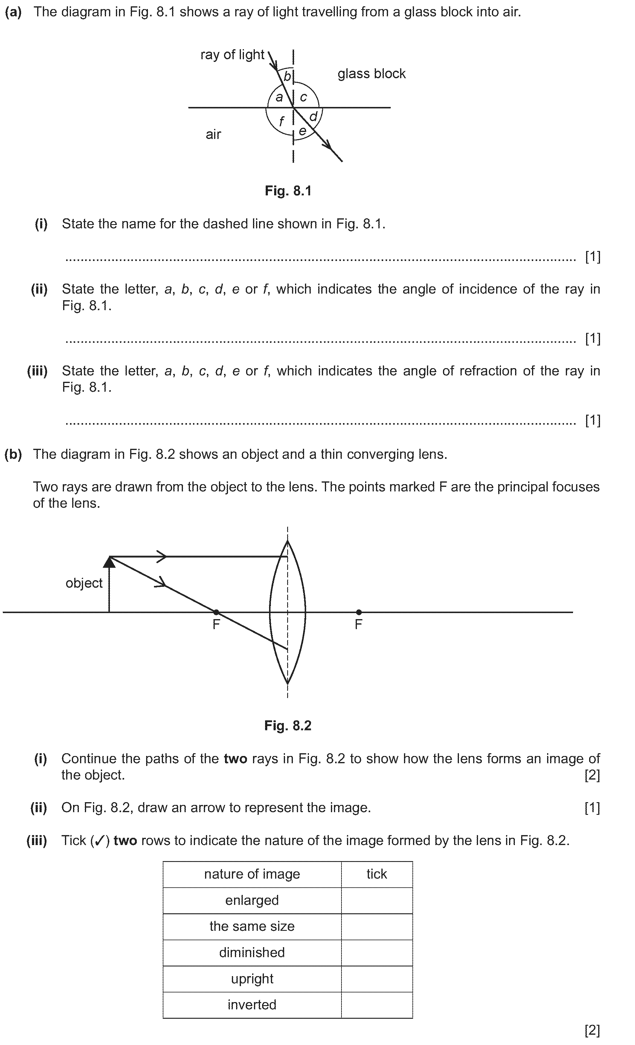 The ray diagram in Fig. 6.1 shows one ray from the top of an object placed to the left of a converging lens.(a) On Fig. 6.1, use your ruler to draw an...