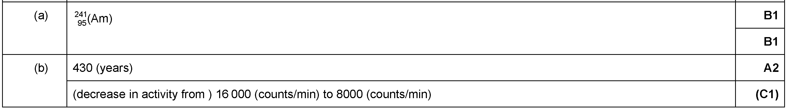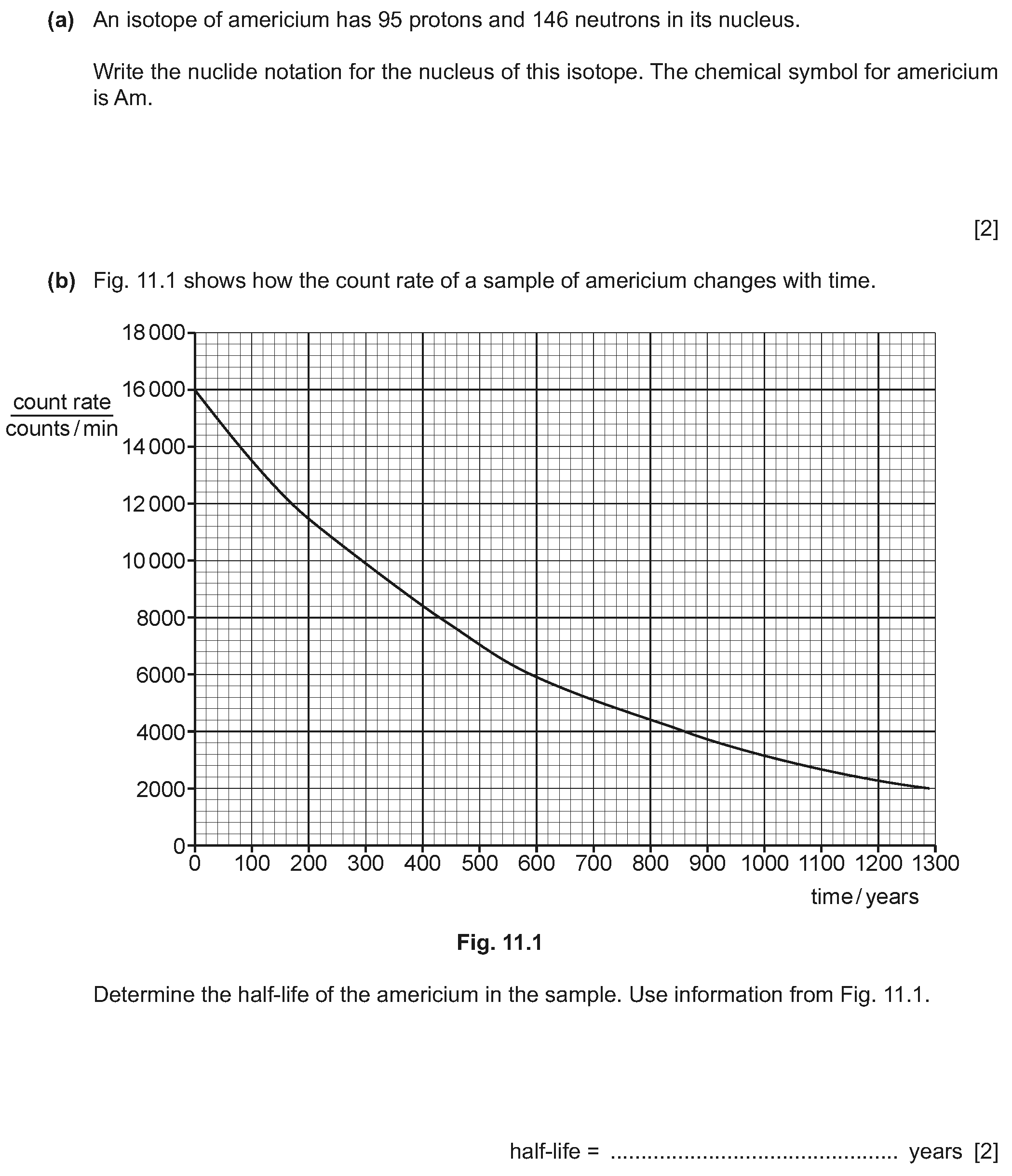 (a) Complete the following definition of radioactive half-life.The half-life of a radioactive substance is the time taken for ...........................