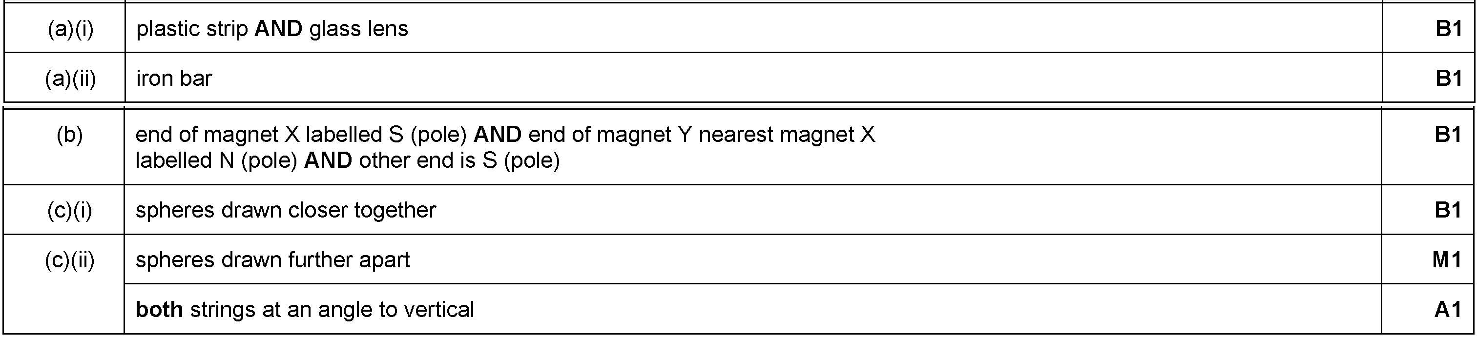 (a) Four rods are shown in Fig. 8.1.[Image_1: plastic rod, iron rod, wooden rod, brass rod]Fig. 8.1State which of these could be held in the hand at o...