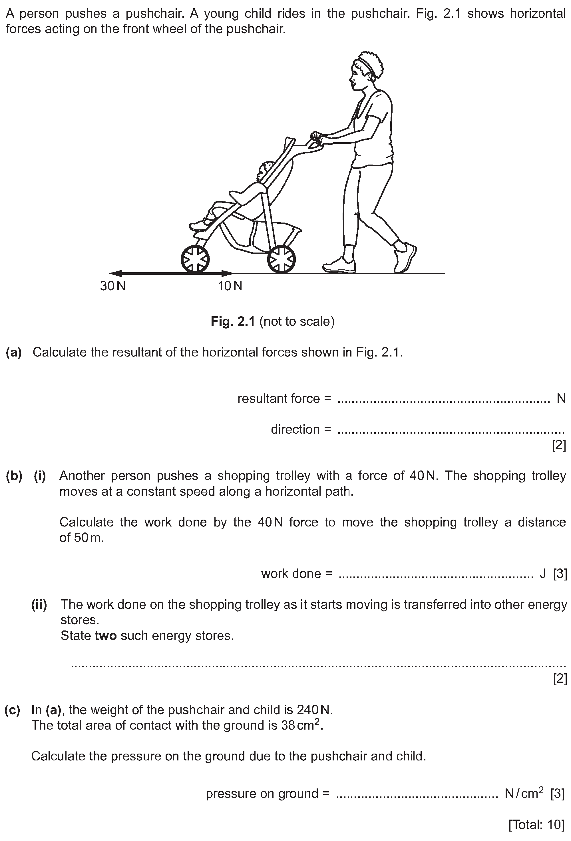 2. Fig. 2.1 shows a concrete beam resting on the ground. (a) The weight of the concrete beam is 1540 N. Calculate the pressure on the ground due to ...