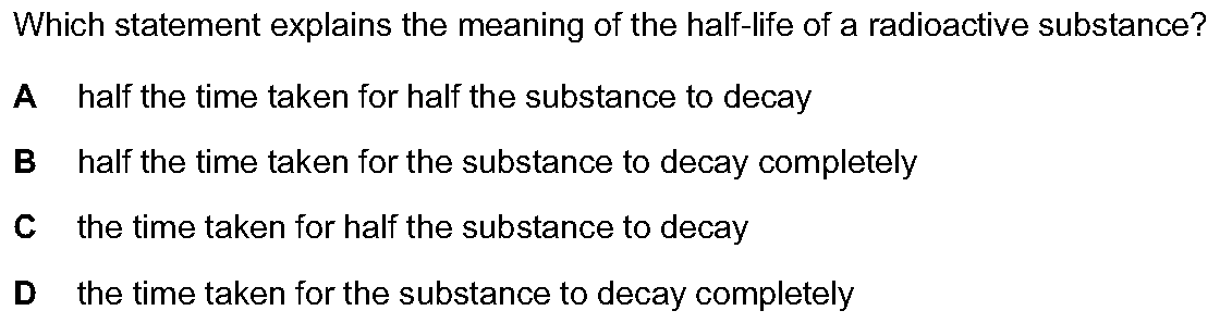 The graph shows the activity of a radioactive source over a period of time. What is the half-life of the source? A $\frac{1}{2}$ hour B 1 hour C ...
