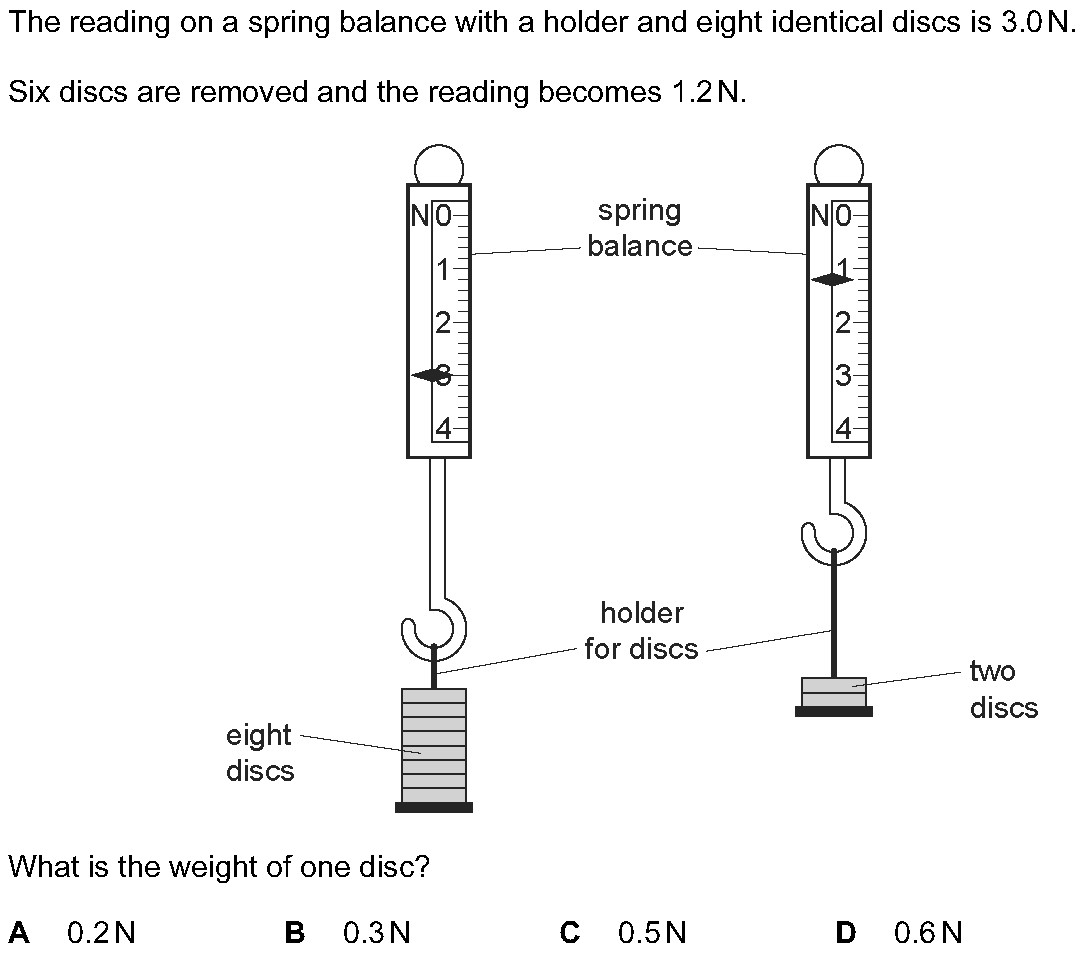 Two blocks of metal X and Y hang from spring balances as shown in the diagram.What does the diagram show about X and Y?A. They have the same mass and ...