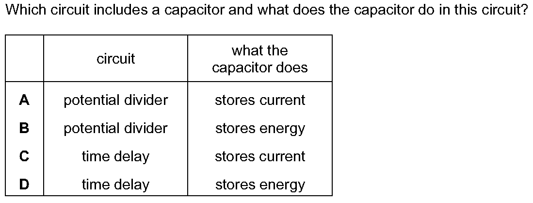 (a) In Fig. 10.1, A is a 1000Ω resistor, C is a transistor, and D is a lamp. S is a 9V supply. ![Image_1: Fig. 10.1](#)(i) Name the component labelle...