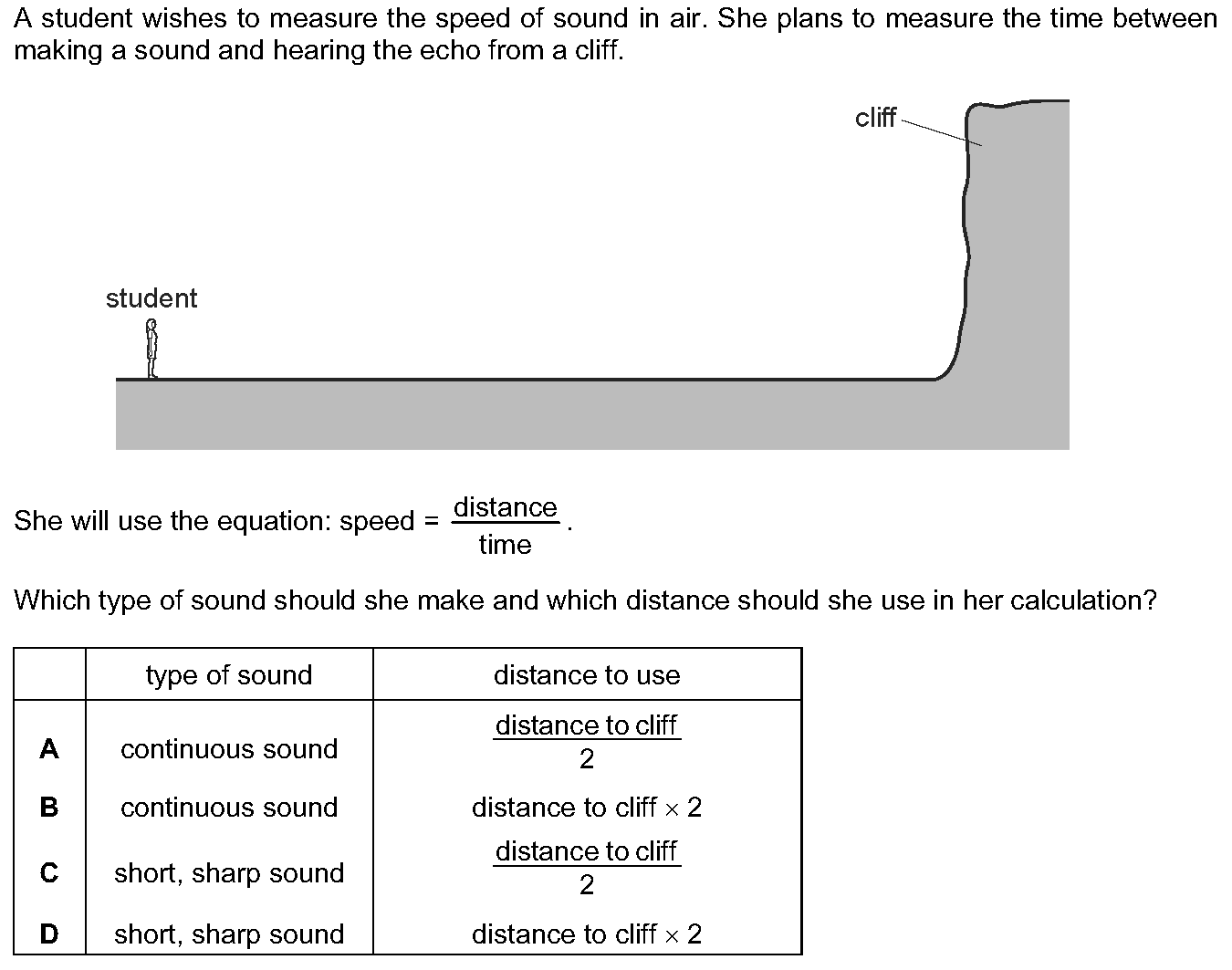 The diagrams represent the waves produced by four sources of sound. The scales are the same for all the diagrams.Which sound has the highest frequency...