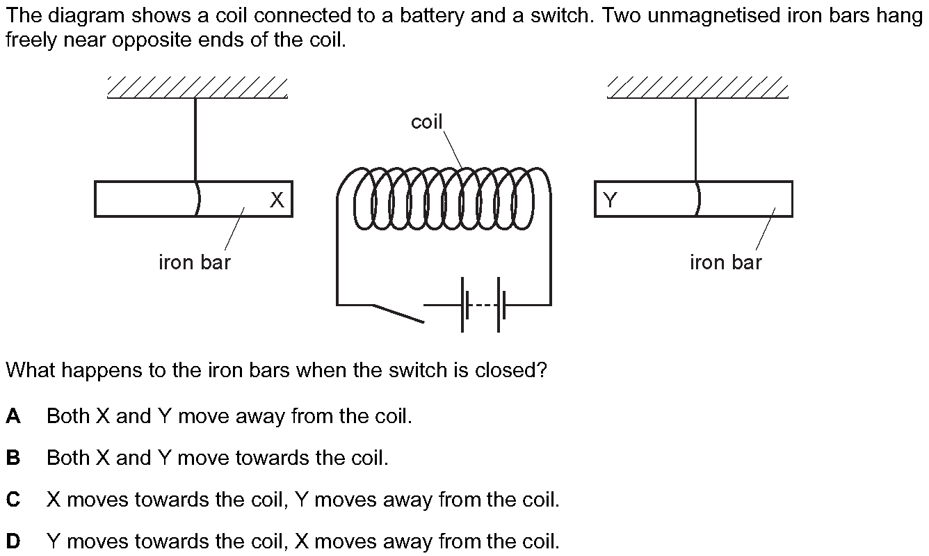 Four nails, A, B, C and D, are tested to find which makes the strongest permanent magnet.One of the nails is placed against a bar magnet and the numbe...
