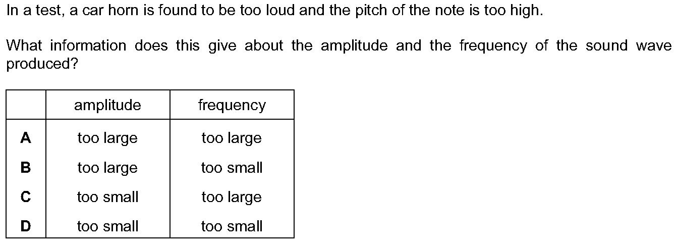 The diagrams represent the waves produced by four sources of sound. The scales are the same for all the diagrams.Which sound has the highest frequency...