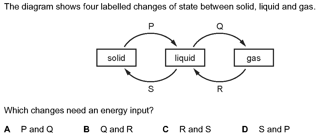 Which change is condensation? [Image depicting changes between solid, liquid, and gas with arrows labeled A, B, C, D]