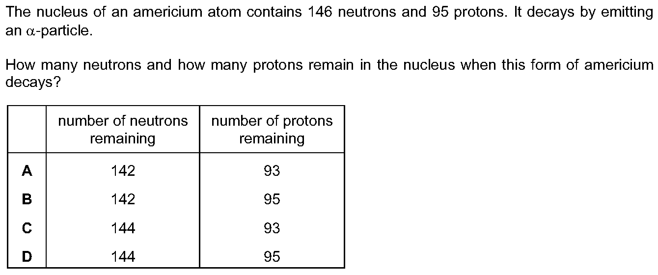 A radioactive nucleus contains 138 neutrons. The nucleus emits an \( \alpha \)-particle. How many neutrons are in the nucleus after it has emitted th...