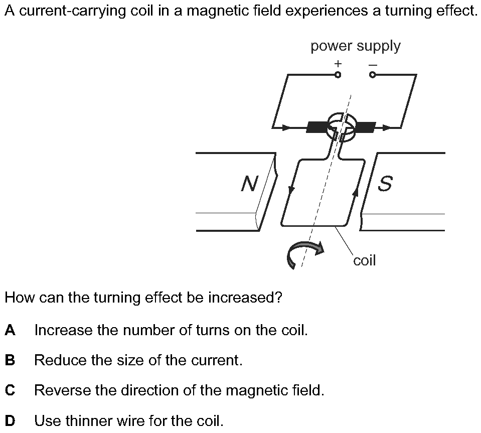 Four nails, A, B, C and D, are tested to find which makes the strongest permanent magnet.One of the nails is placed against a bar magnet and the numbe...