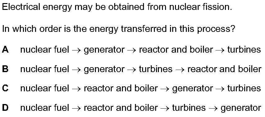 Electricity can be obtained from different energy resources.Which energy resource is used to obtain electricity without producing heat to boil water?A...