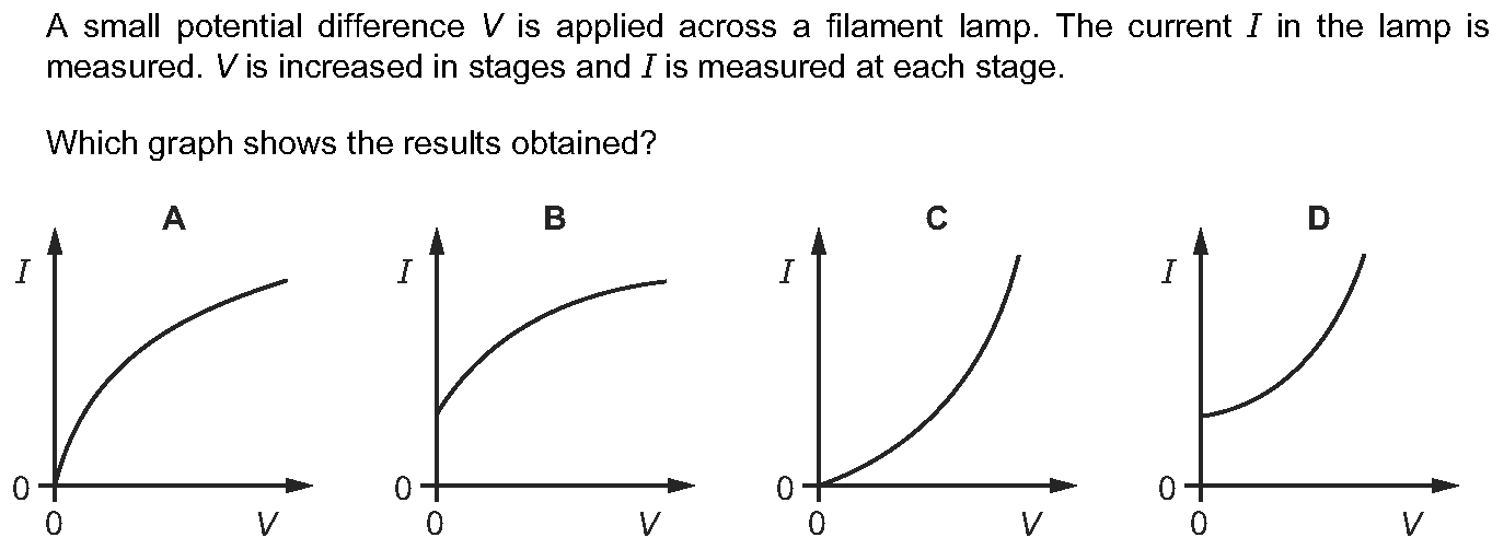 The graphs in Fig. 9.1 show the relation between the current $I$ and the potential difference $V$ for a resistor and a lamp.(a) (i) Describe how, if a...
