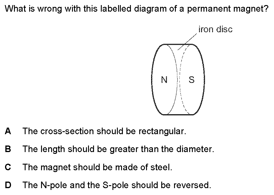Four nails, A, B, C and D, are tested to find which makes the strongest permanent magnet.One of the nails is placed against a bar magnet and the numbe...