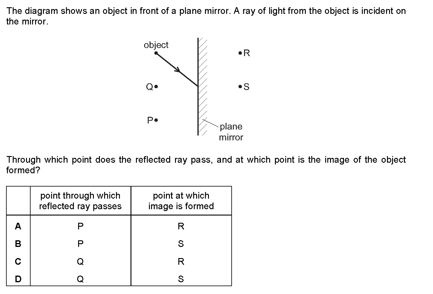 The image formed by a plane mirror is upright. What are the other characteristics of the image?[Table_1]| | laterally inverted (left ...