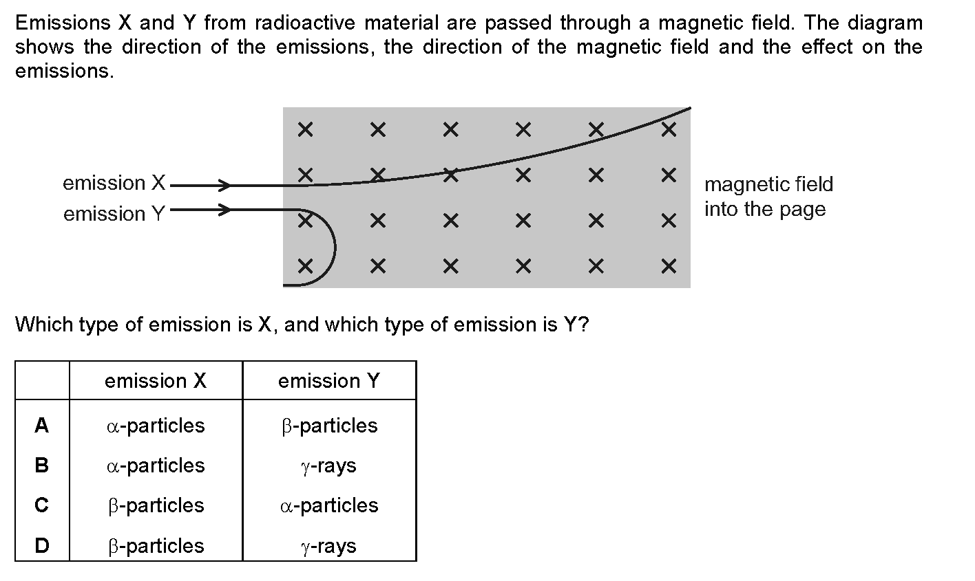 Emissions from a radioactive source pass through a hole in a lead screen and into a magnetic field, as shown in Fig. 10.1. Radiation detectors are p...