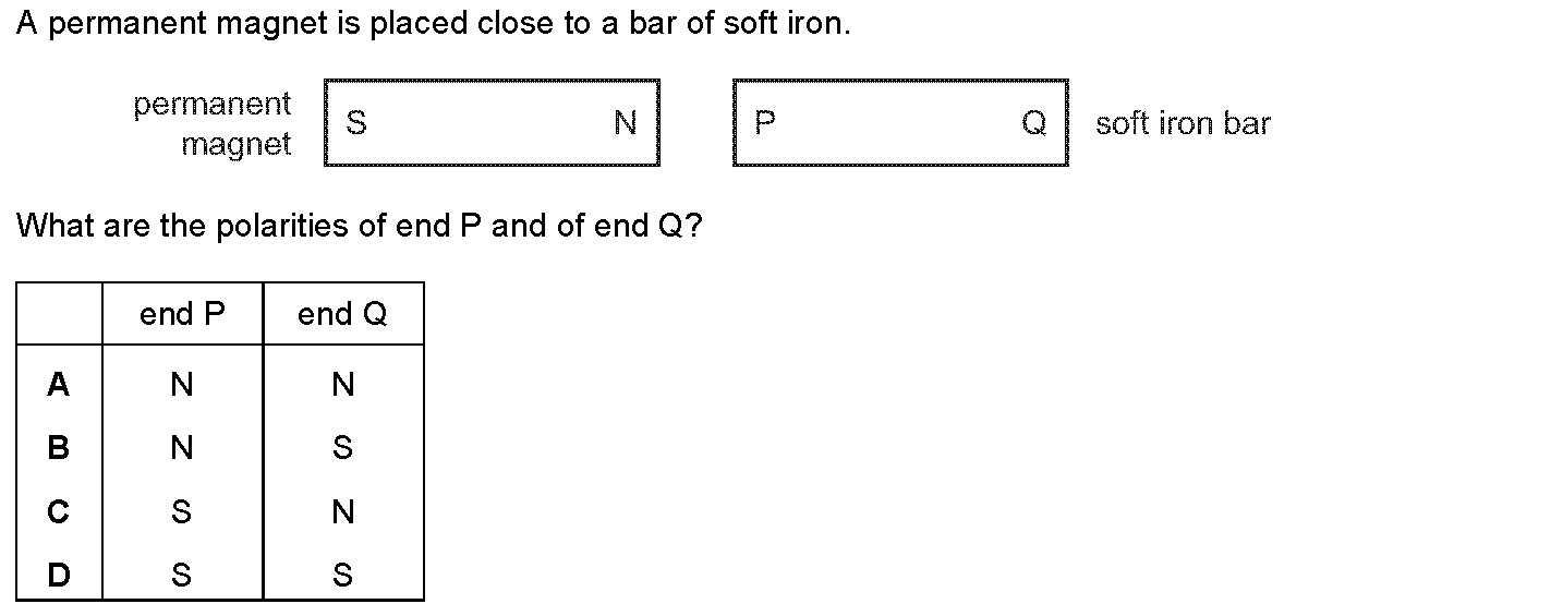 A horseshoe magnet is brought near to an unmagnetised iron bar. [Image_1: Diagram of horseshoe magnet with labeled N and S poles near an iron bar] W...