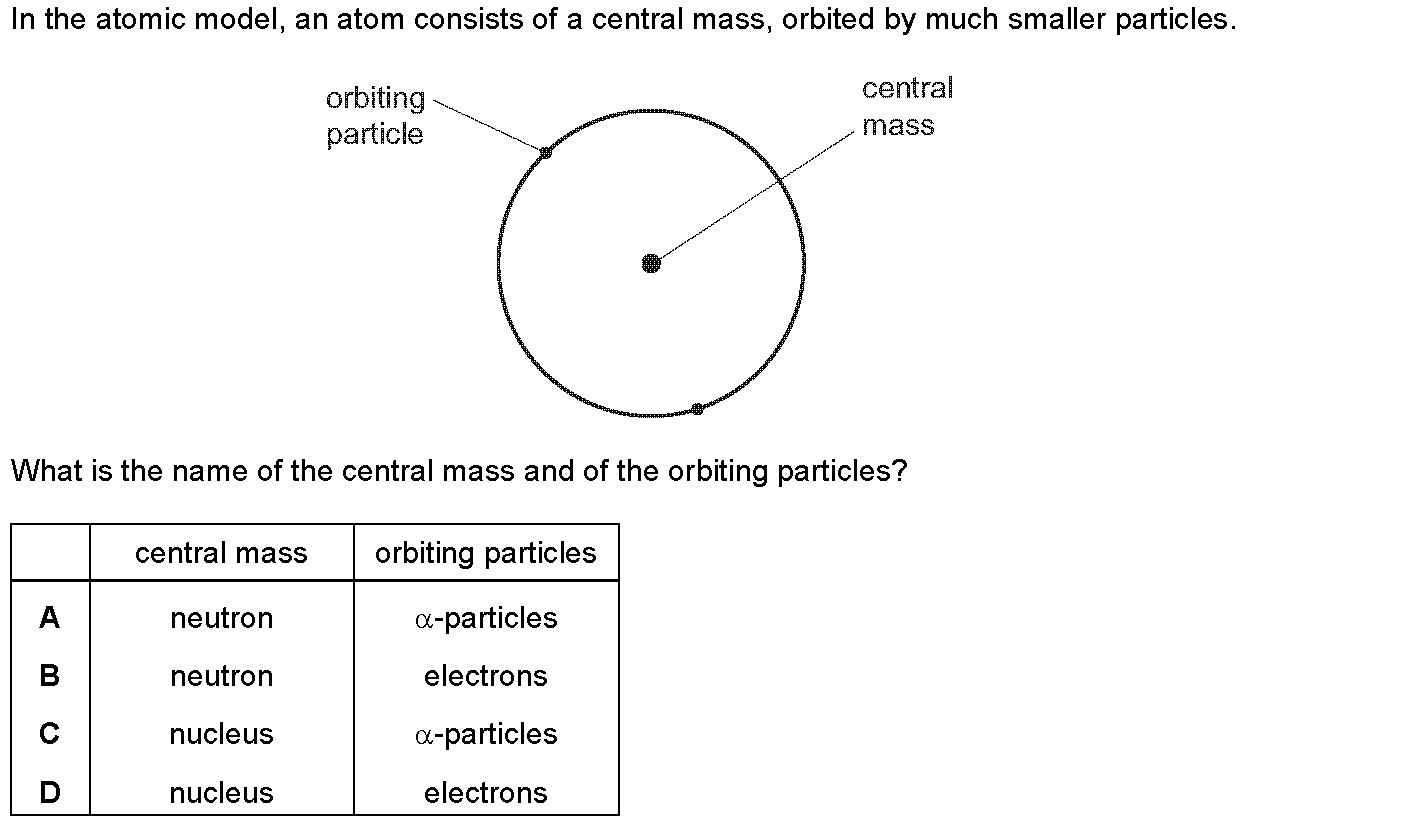 (a) An atom consists of a nucleus made up of protons and neutrons, surrounded by orbiting electrons.(i) Which of these particles has a positive charge...