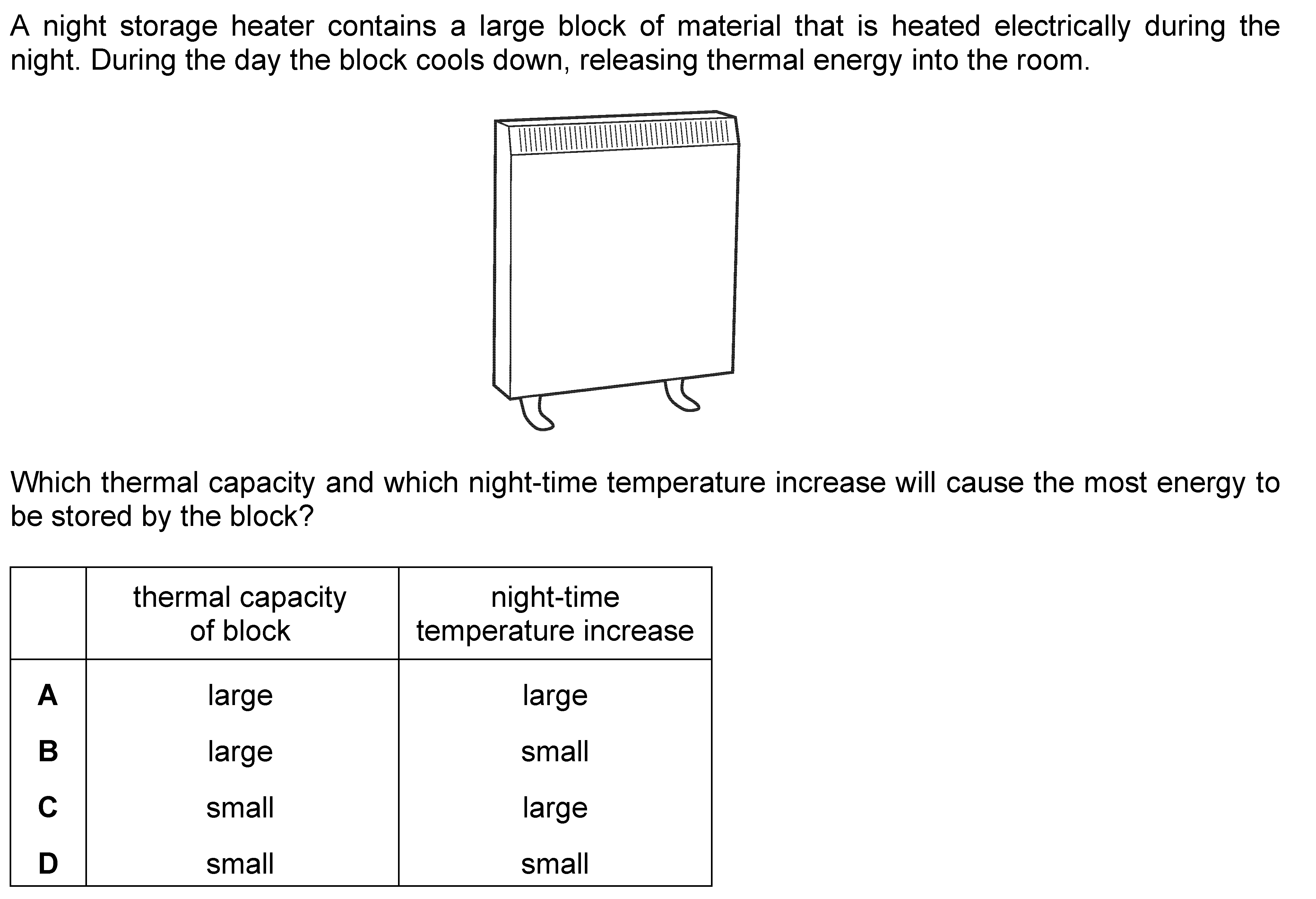 Four blocks, made of different materials, are each given the same quantity of internal energy (heat).Which block has the greatest thermal capacity?[Im...