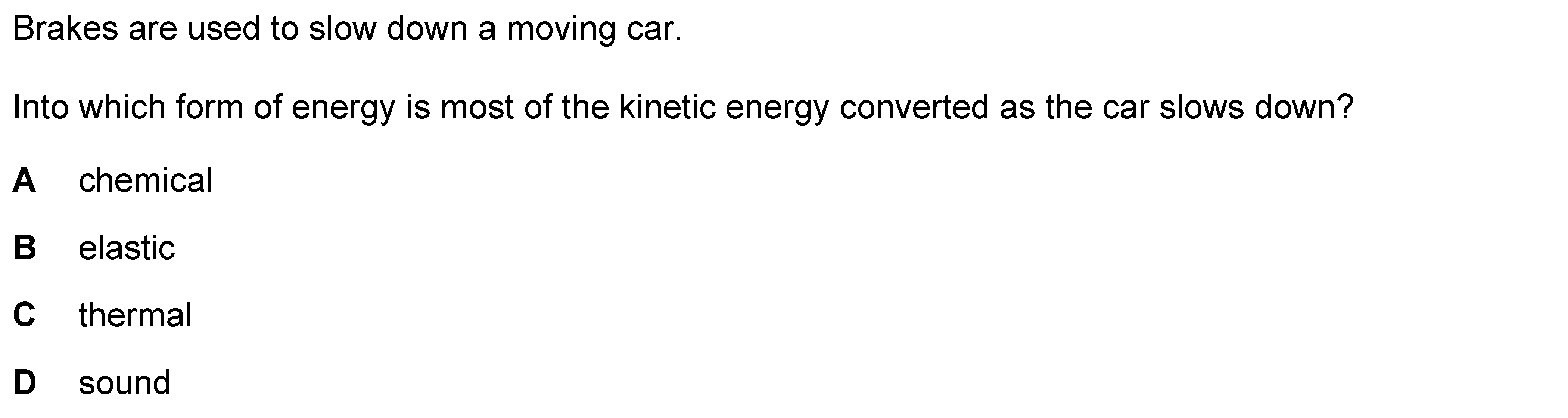 A car is driven on a long journey along a flat, horizontal road. The car stops several times on the journey and its engine becomes hot.Which type of e...