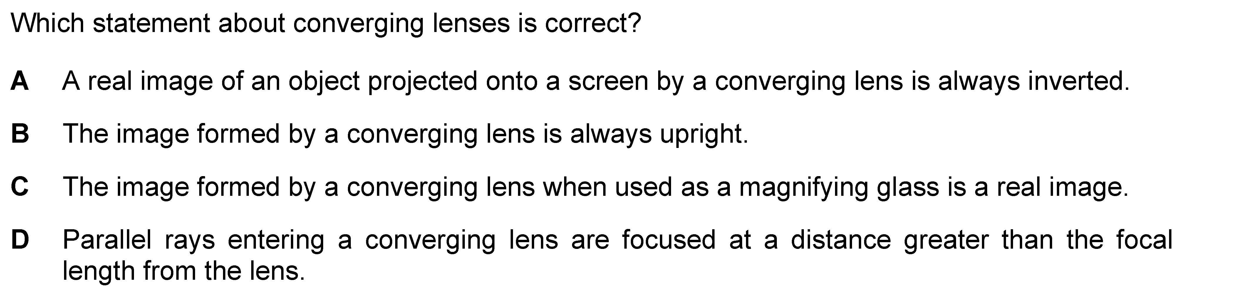 A student draws three rays of light from point P through a converging lens.Each point labelled F is a principal focus of the lens.Which of the rays ar...
