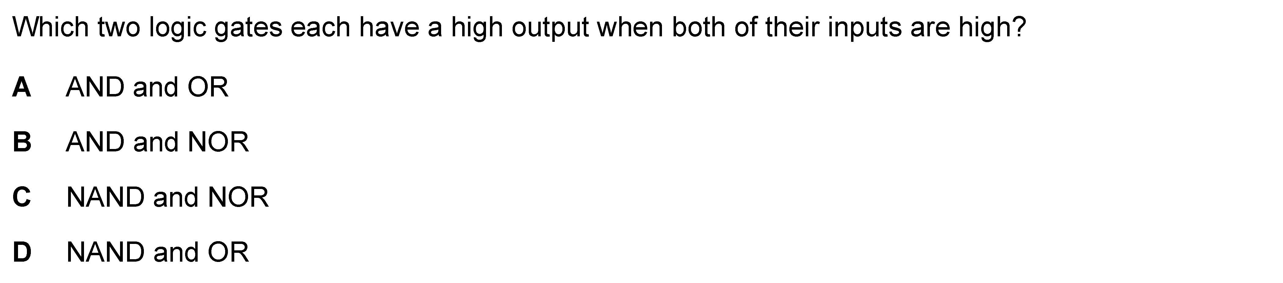 (a) In the space below, draw the symbol for an OR gate.[1](b) Describe the action of an OR gate in terms of its inputs and outputs.......................