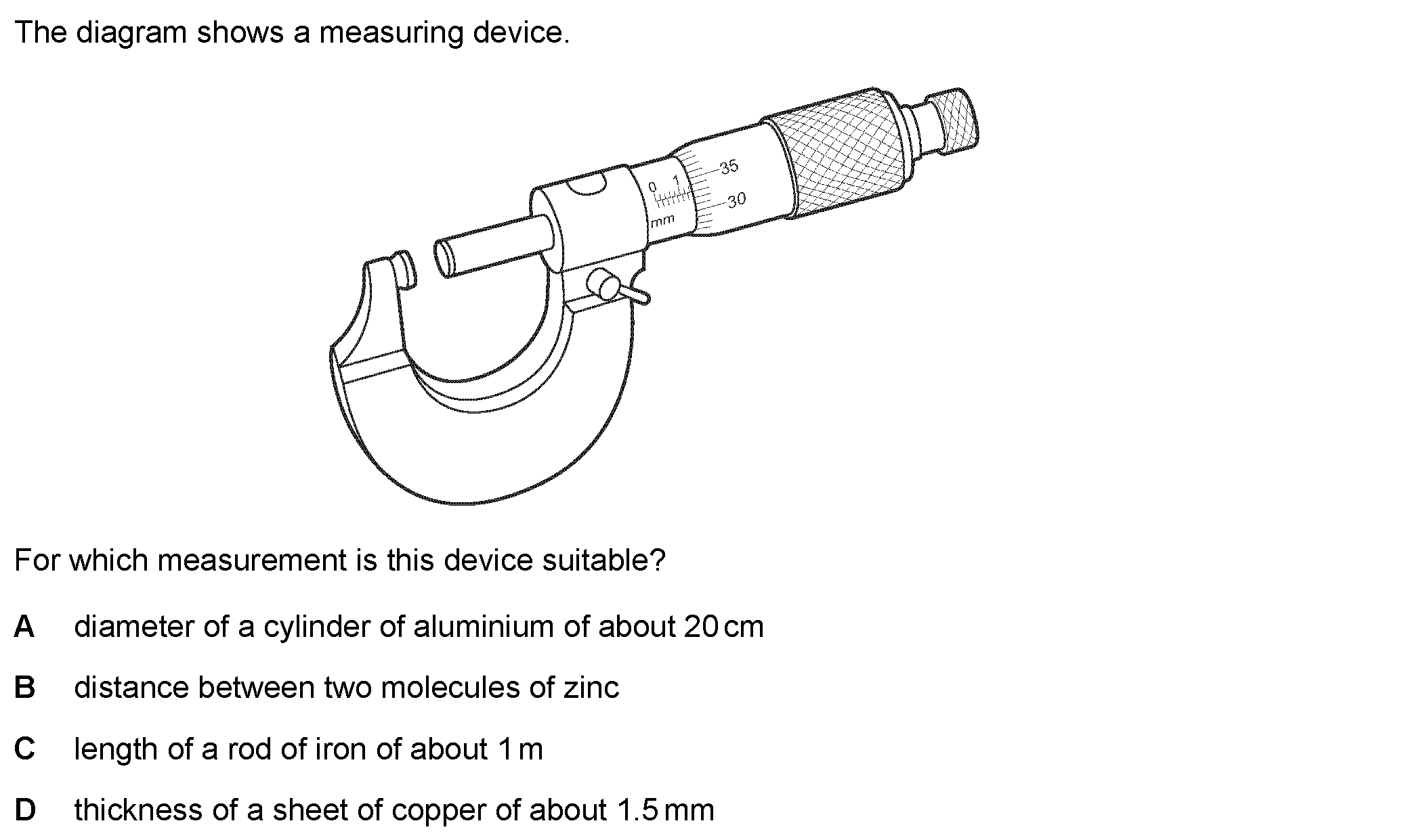 Which items of apparatus are required to determine the density of a liquid? A balance and measuring cylinder B balance and thermometer C metre rule...
