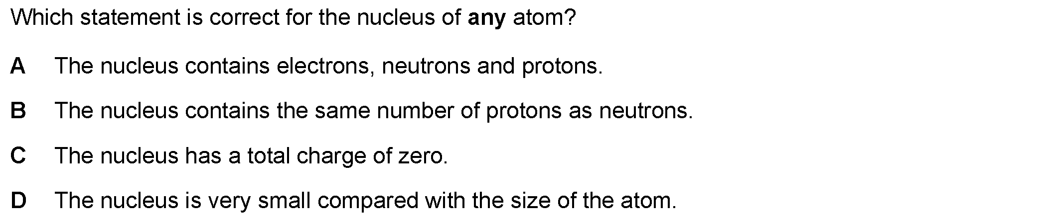 A certain element is known to exist as two different isotopes.(a) State one thing that is the same for atoms of both isotopes............................