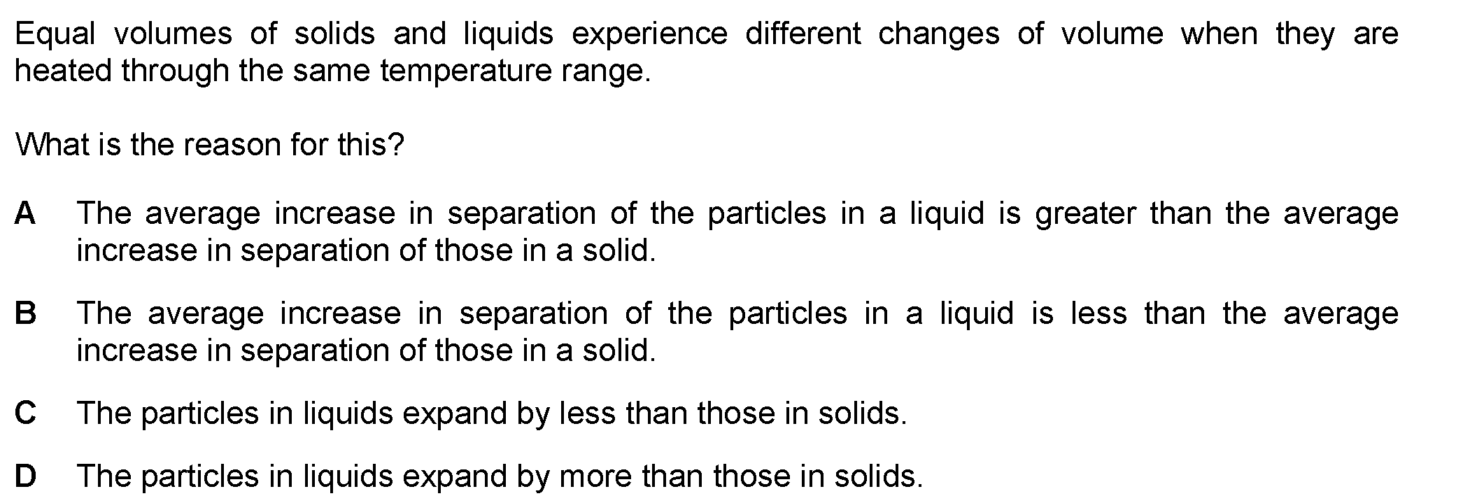 (a) Equal volumes of a gas held at constant pressure, a liquid and a solid undergo the same temperature rise.(i) State which of the three, solid, liqu...