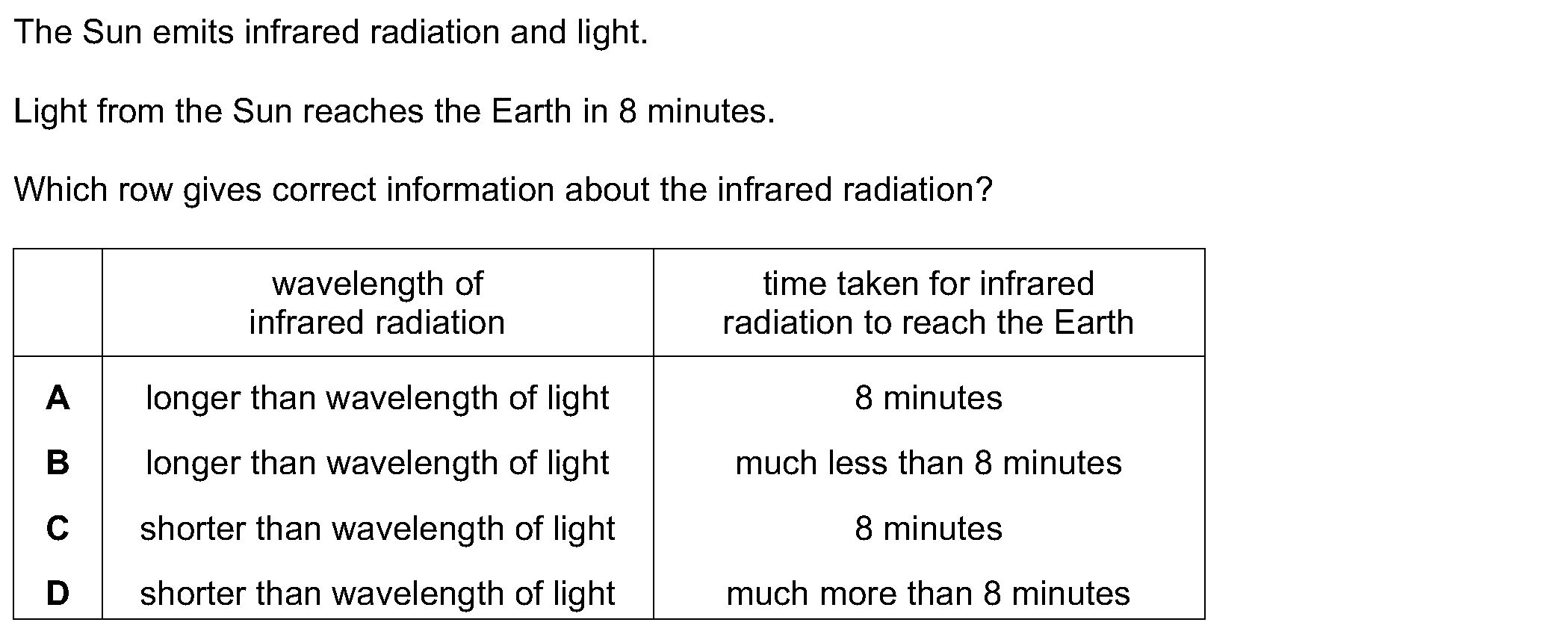 Which row correctly describes light waves and radio waves?[Table_1][Table_1]:| | light waves | radio waves ||-------|--------------|----------...