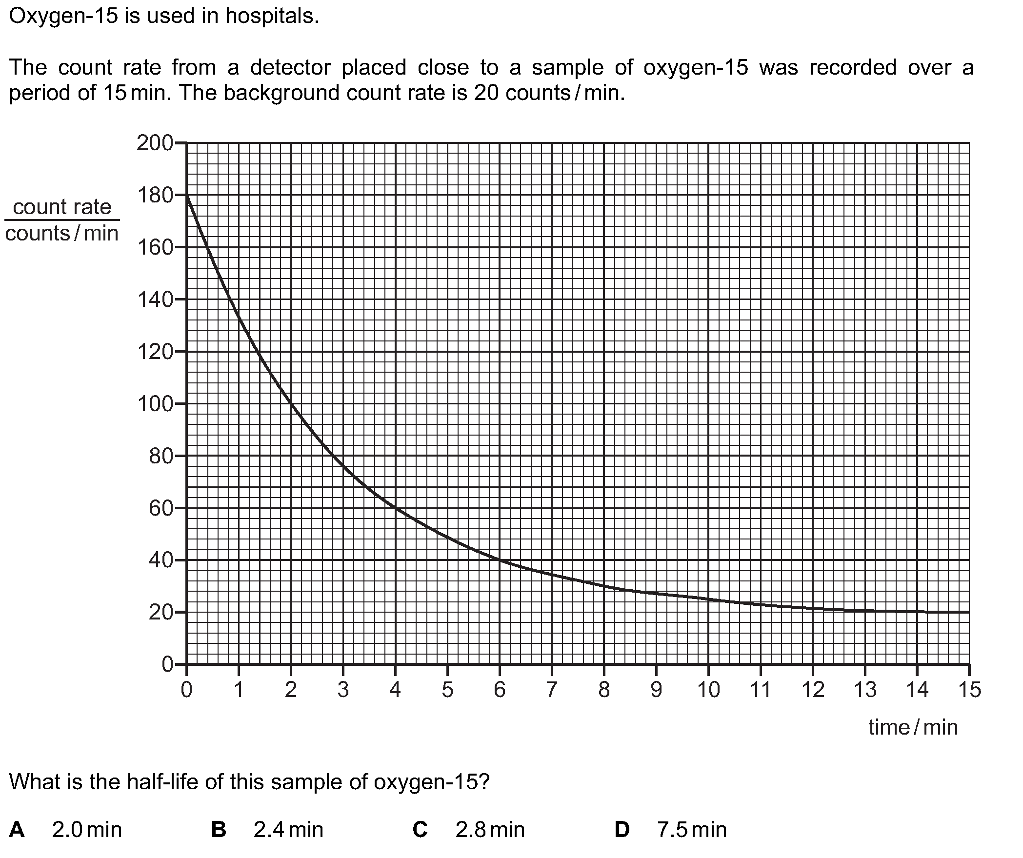 The graph shows the activity of a radioactive source over a period of time. What is the half-life of the source? A $\frac{1}{2}$ hour B 1 hour C ...