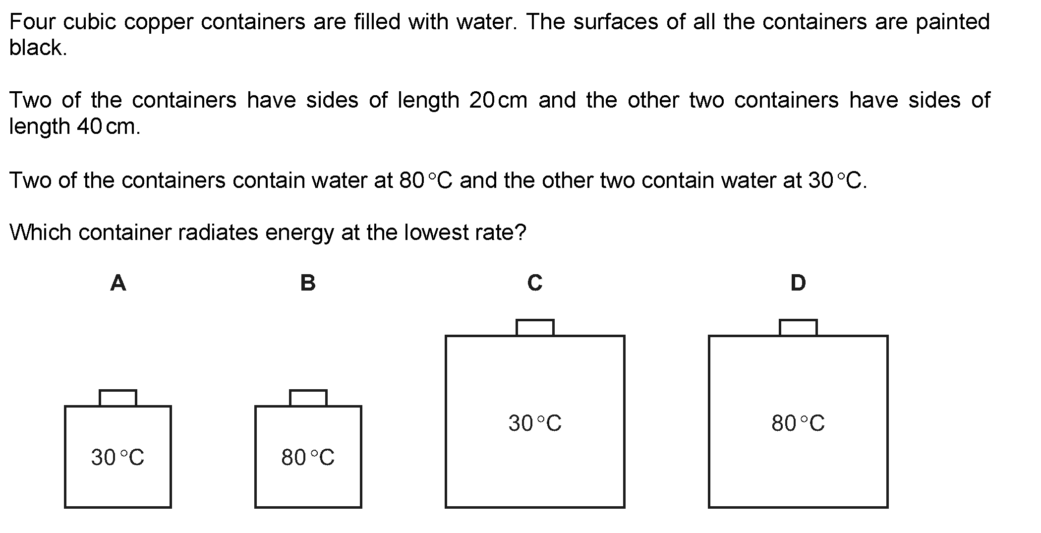 Four blocks, made of different materials, are each given the same quantity of internal energy (heat).Which block has the greatest thermal capacity?[Im...