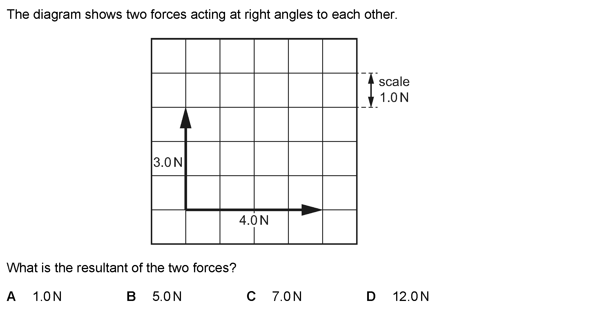 On the diagram shown, what is the magnitude of the resultant force of the two vectors?[Image: A diagram with two vectors; one vector of 6.0 N upwards ...