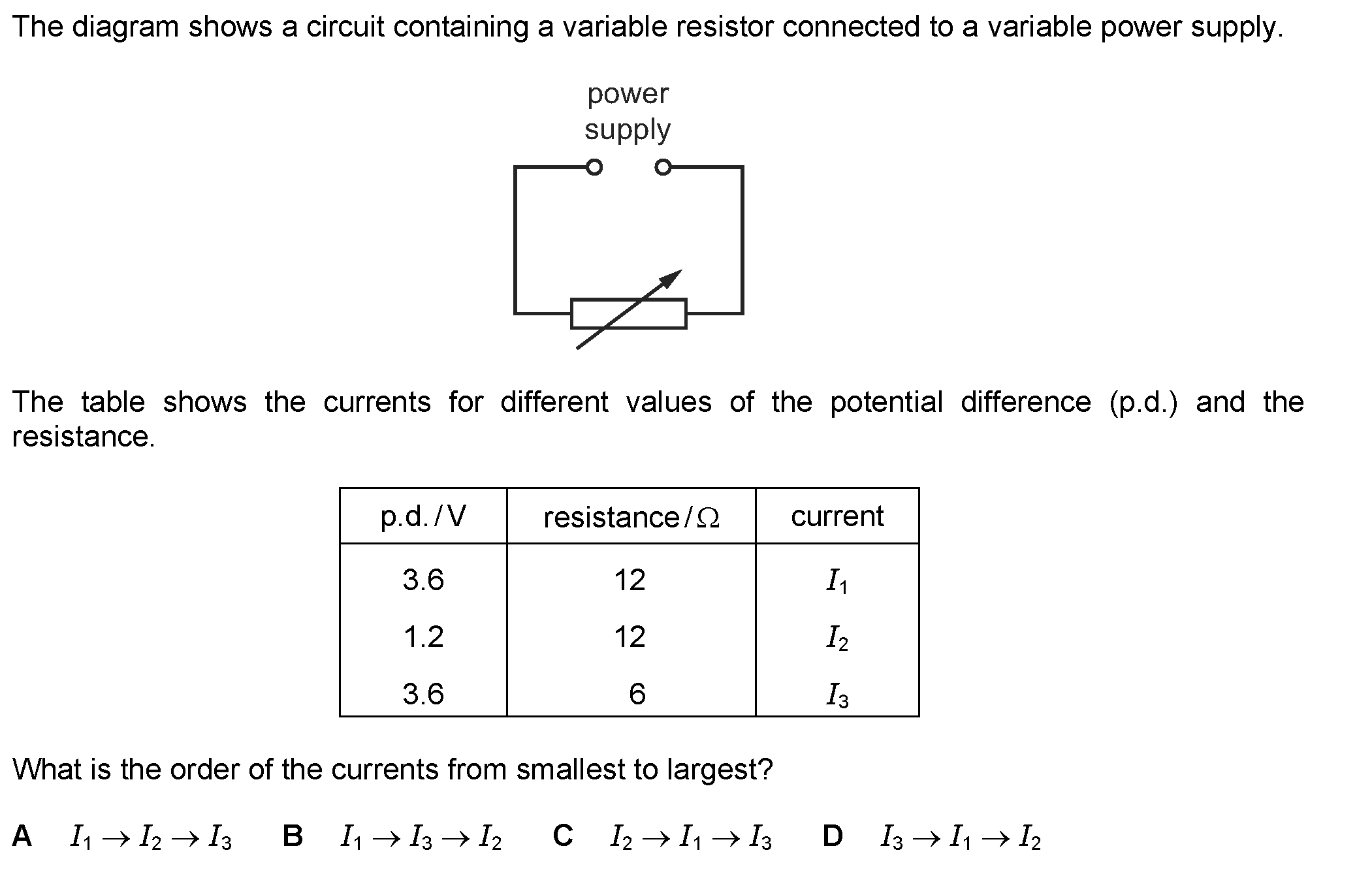 A potential difference (p.d.) across a resistor causes a current in it. [Image_1: Diagram of resistor with arrow indicating current and p.d.]The p.d. ...