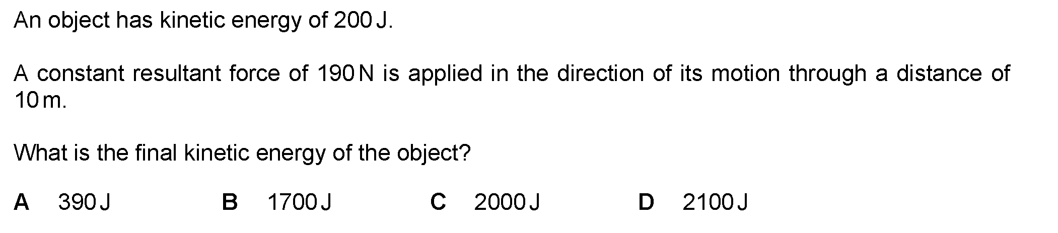 A car of mass 900 kg is travelling at a steady speed of 30 m/s against a resistive force of 2000 N, as illustrated in Fig. 2.1.(a) Calculate the kinet...