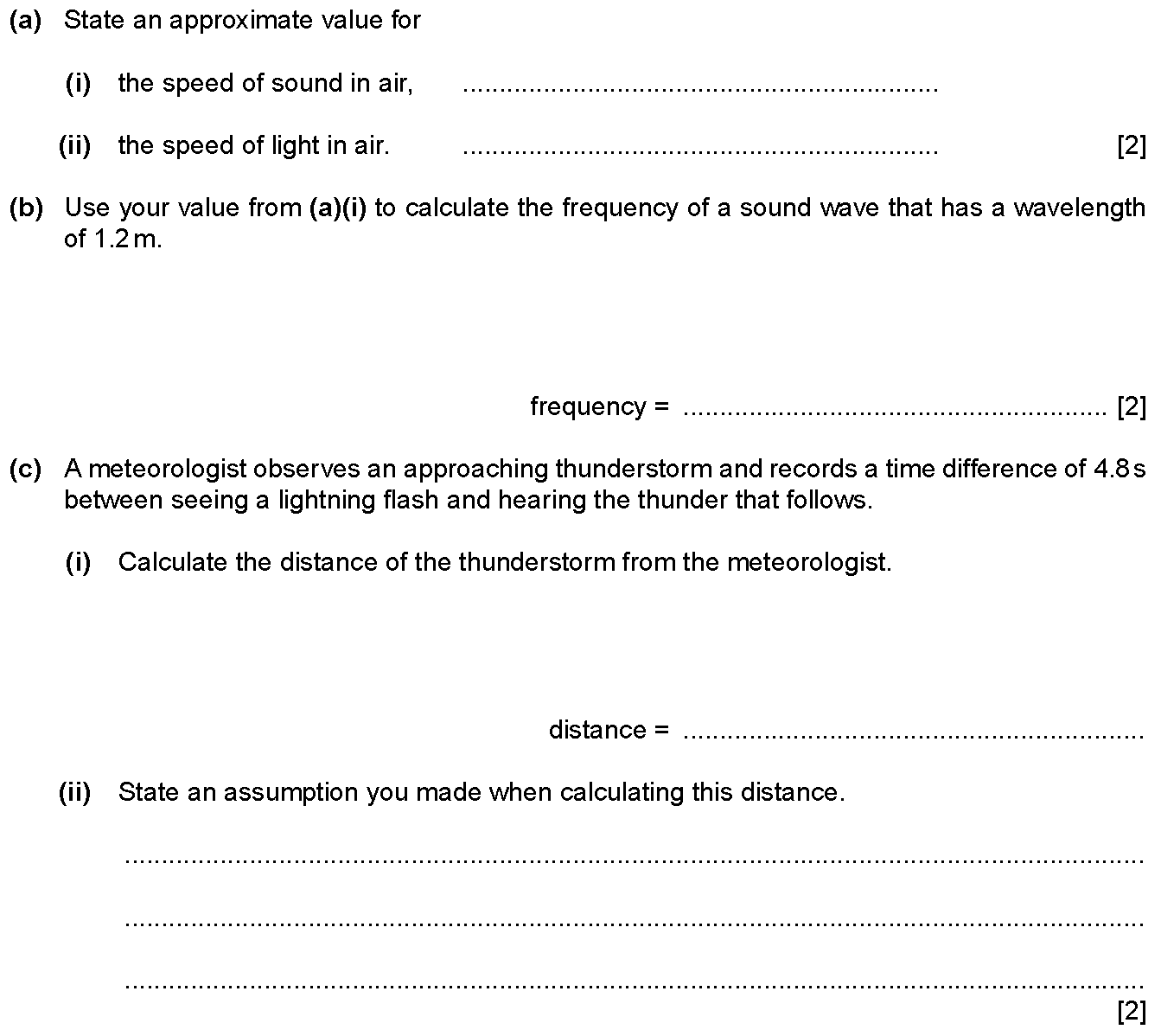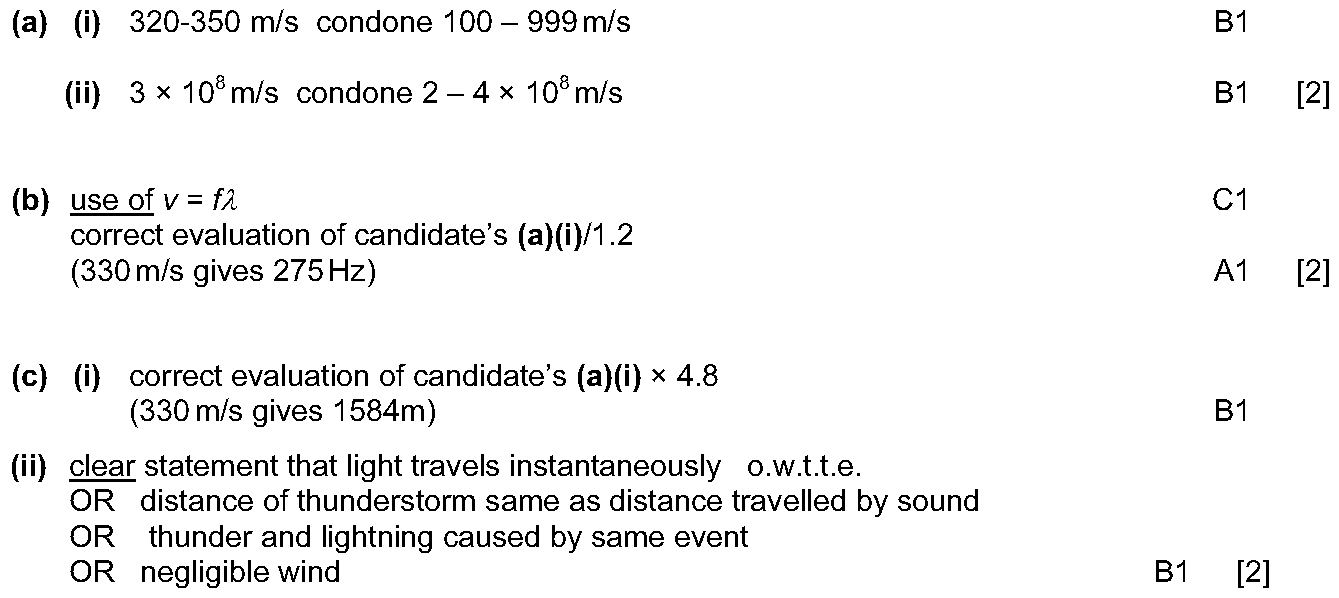 During a thunderstorm, thunder and lightning are produced at the same time.(a) A person is some distance away from the storm.Explain why the person se...