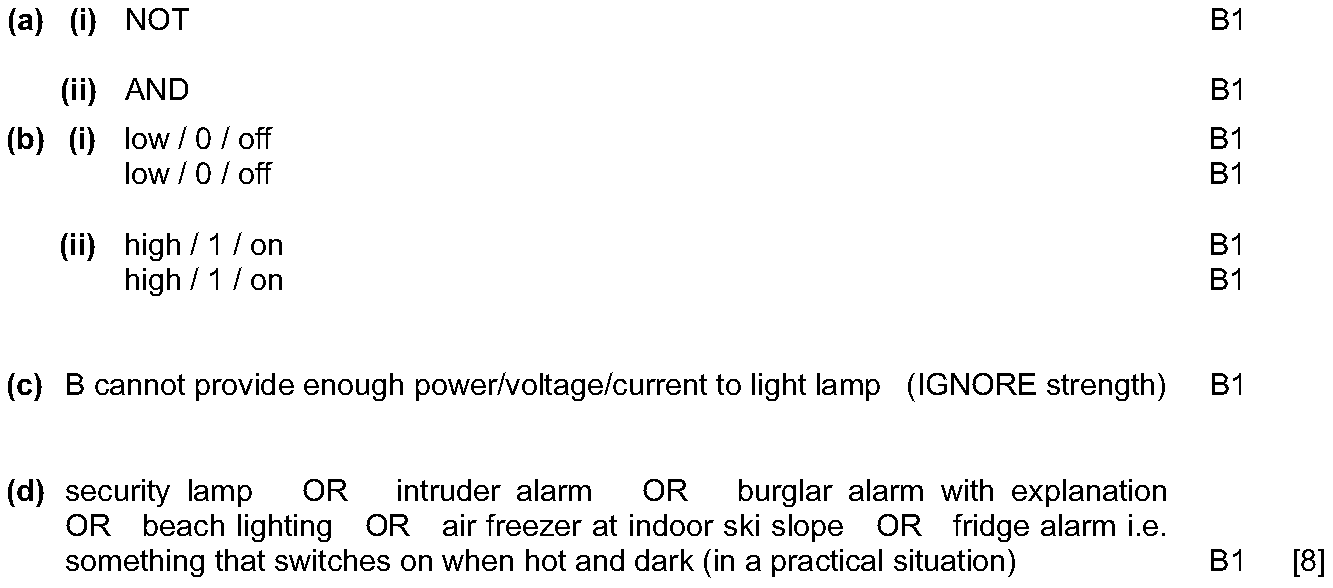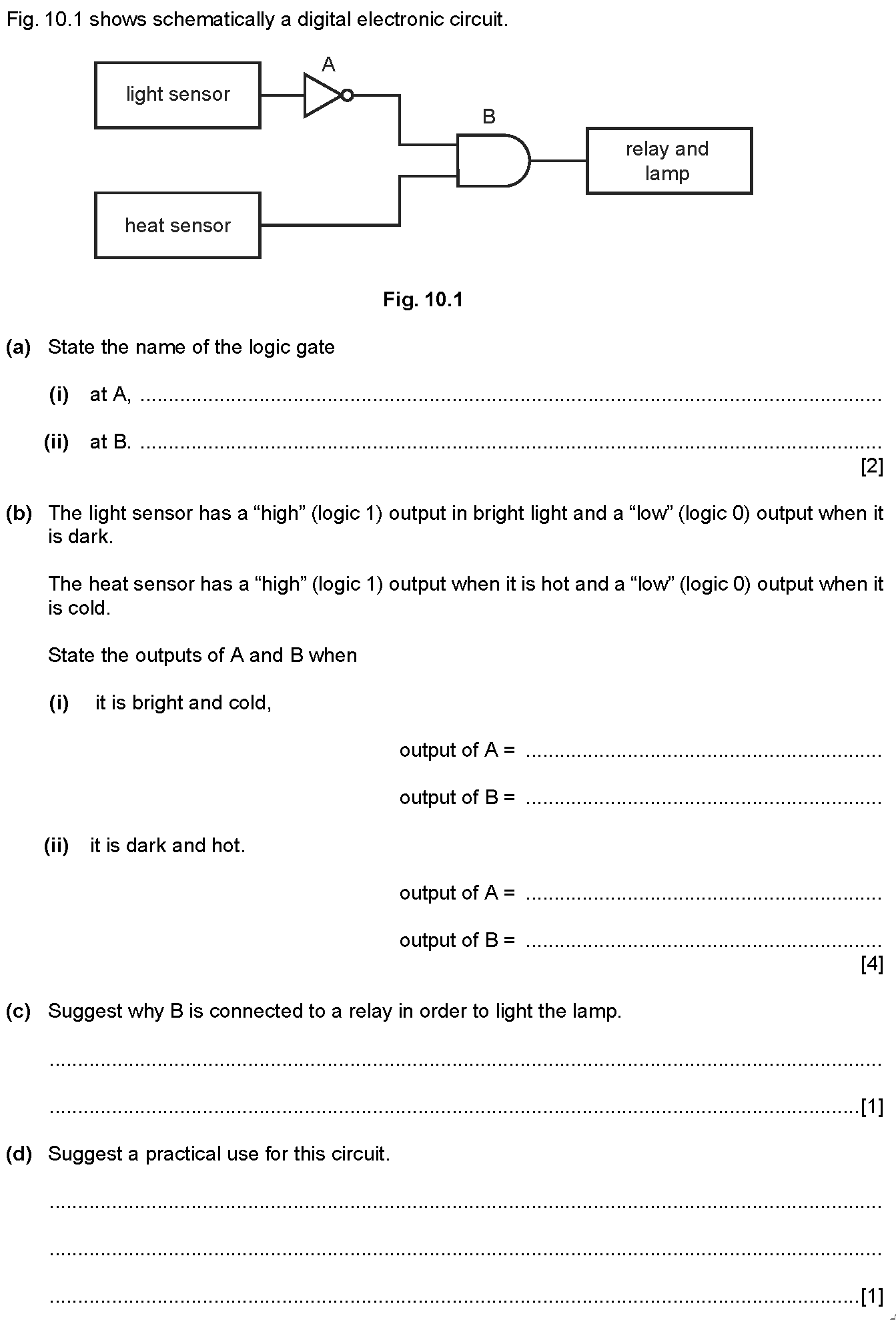 (a) In the space below, draw the symbol for an OR gate.[1](b) Describe the action of an OR gate in terms of its inputs and outputs.......................