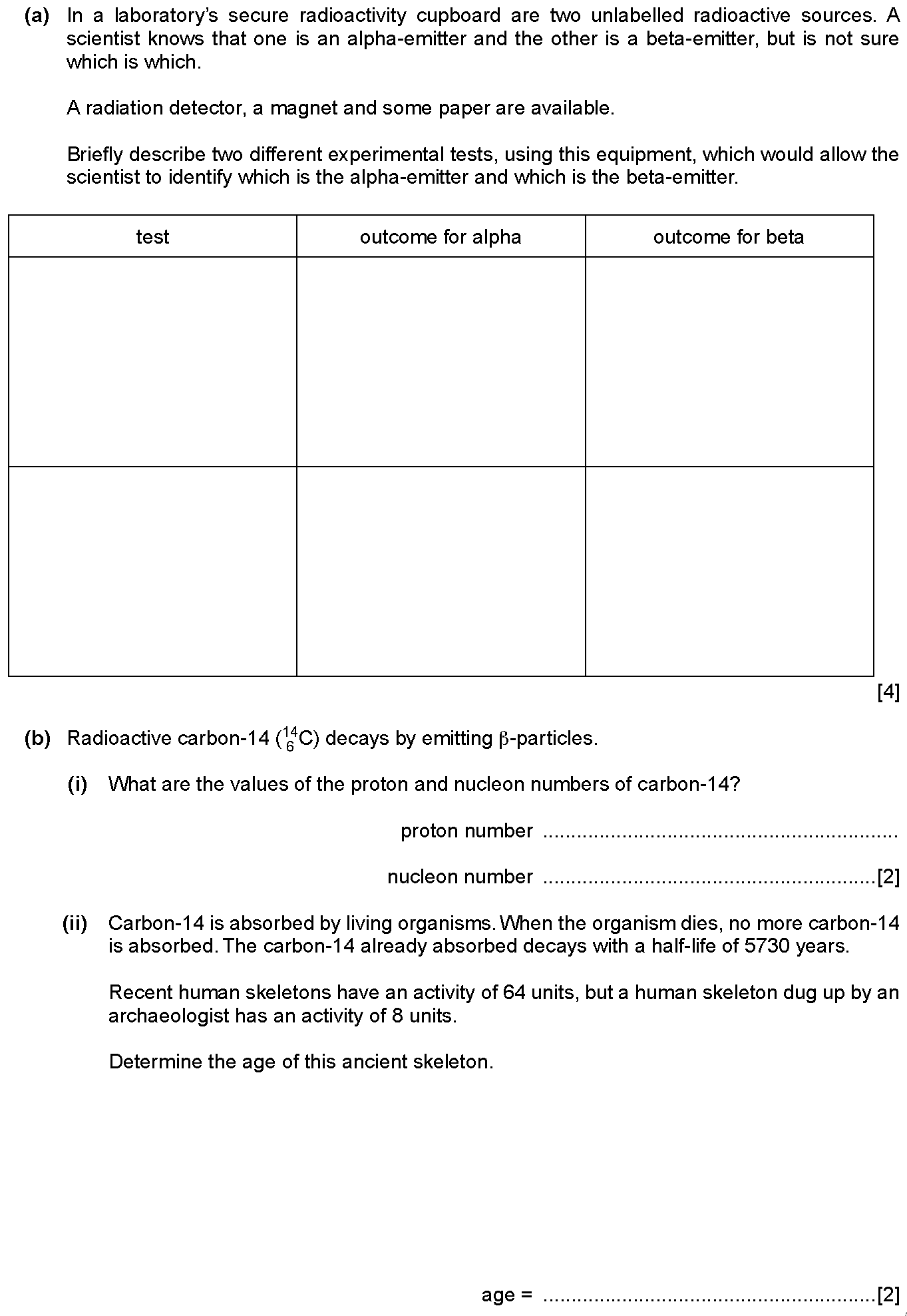 Emissions from a radioactive source pass through a hole in a lead screen and into a magnetic field, as shown in Fig. 10.1. Radiation detectors are p...
