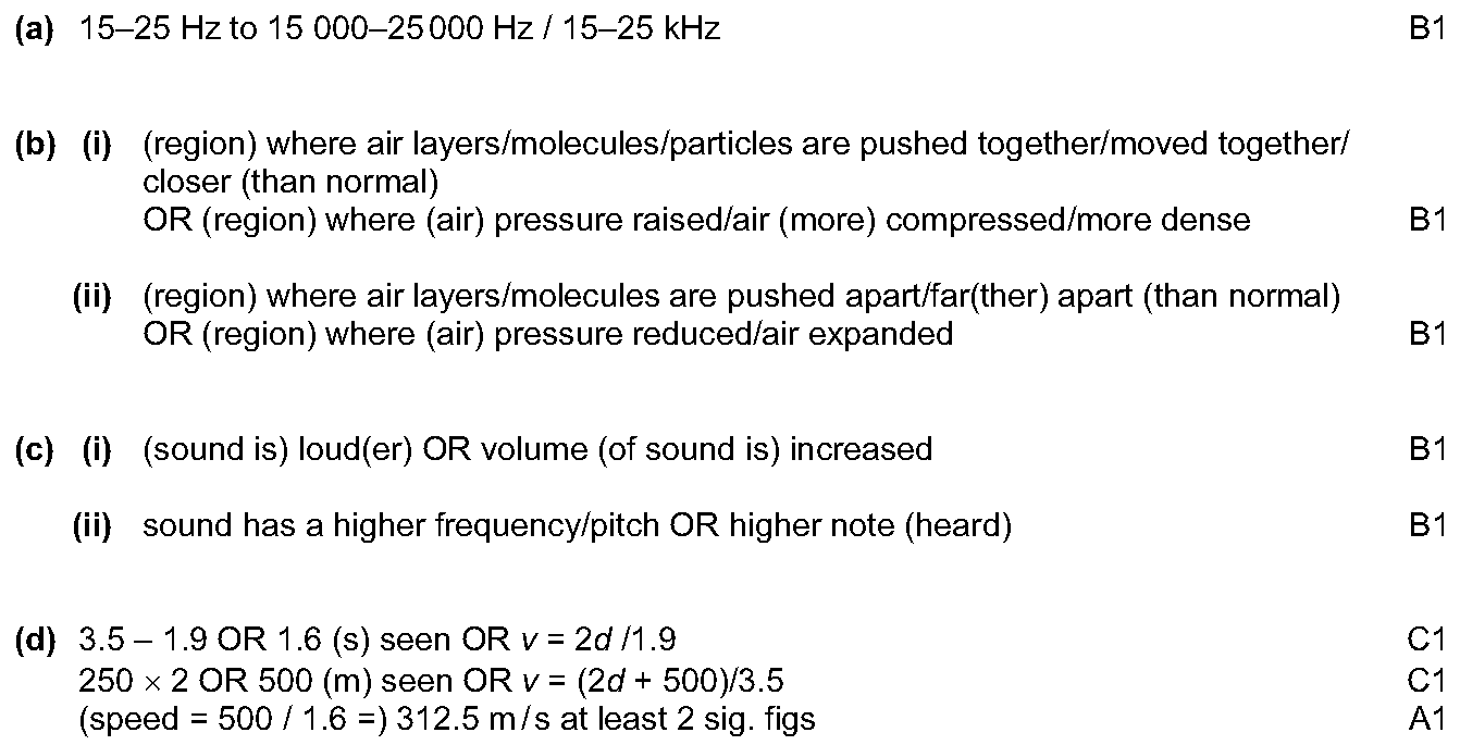 (a) Fig. 6.1 shows the position of layers of air, at one moment, as a sound wave of constant frequency passes through the air. Compressions are labell...