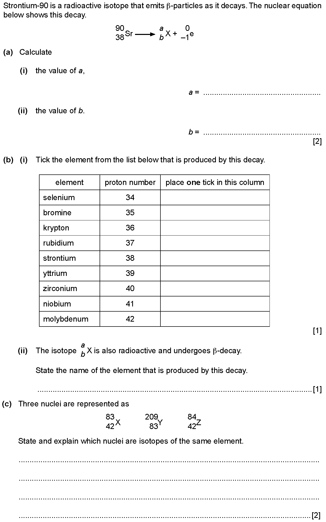 A certain element is known to exist as two different isotopes.(a) State one thing that is the same for atoms of both isotopes............................