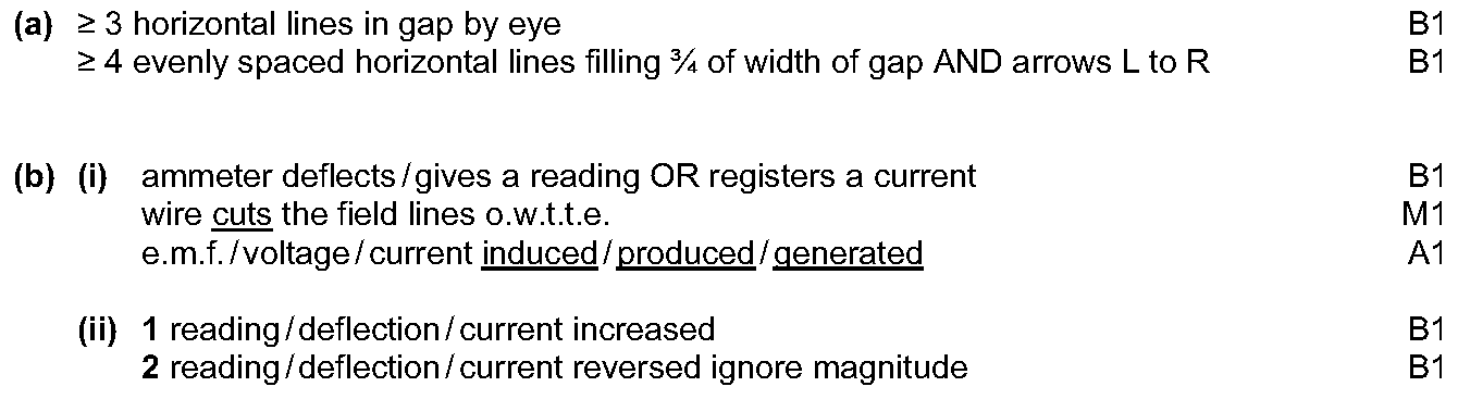 (a) Fig. 9.1 illustrates the left hand rule, which helps when describing the force on a current-carrying conductor in a magnetic field.Fig. 9.1One dir...