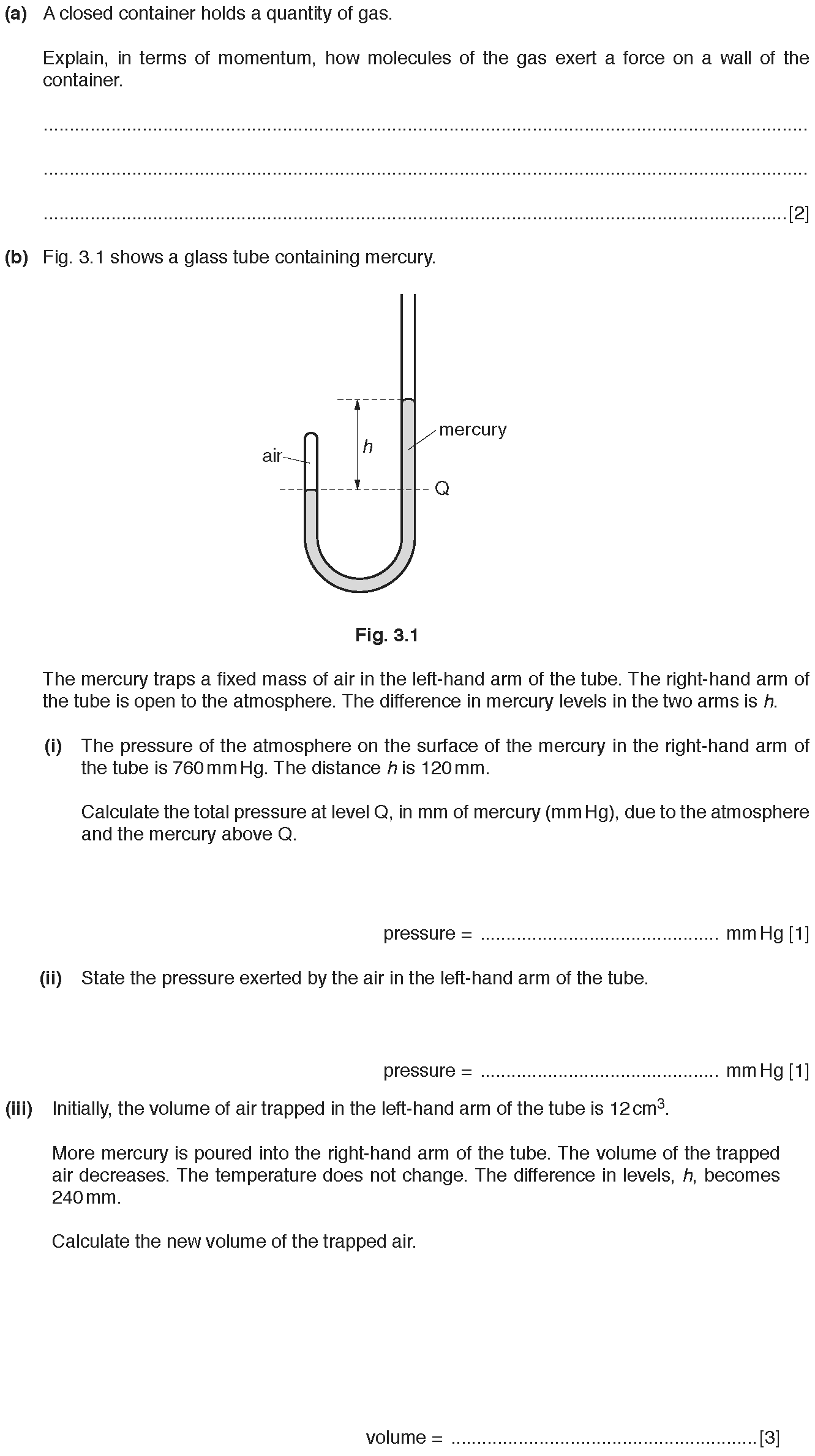 (a) Complete Fig. 4.1 to show a simple mercury barometer. Insert the correct labels in the boxes. Label with the letter $h$ the measurement required t...