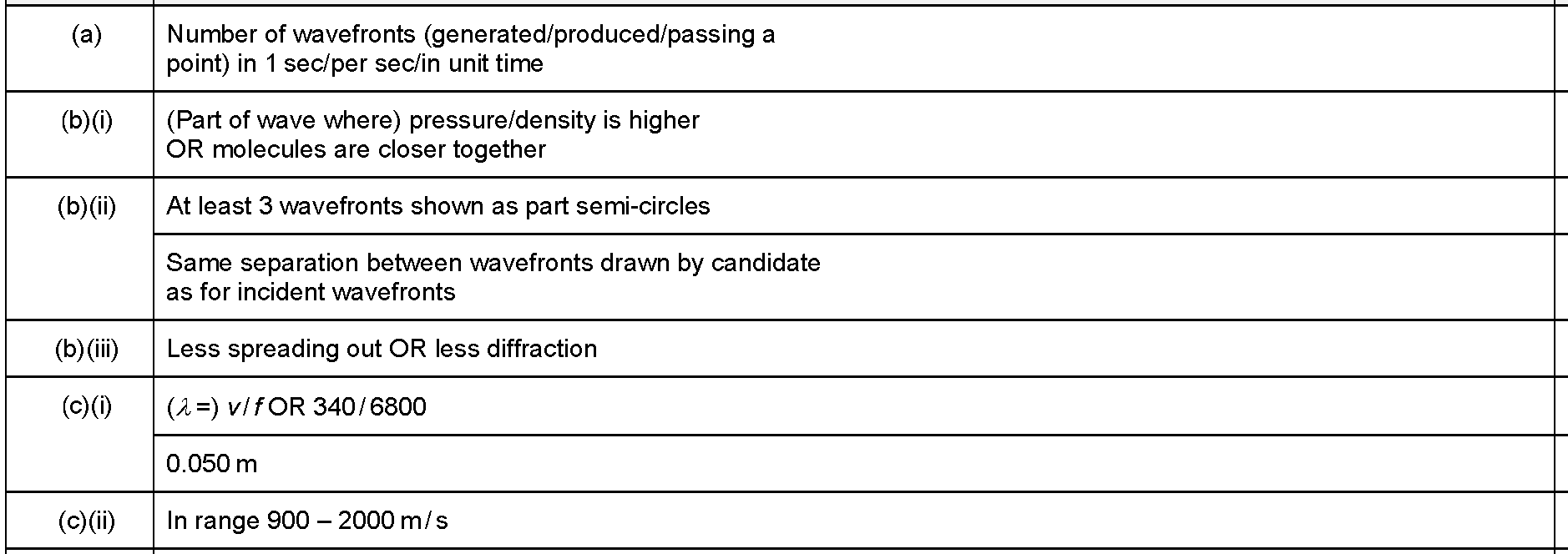 (a) Fig. 6.1 shows the position of layers of air, at one moment, as a sound wave of constant frequency passes through the air. Compressions are labell...