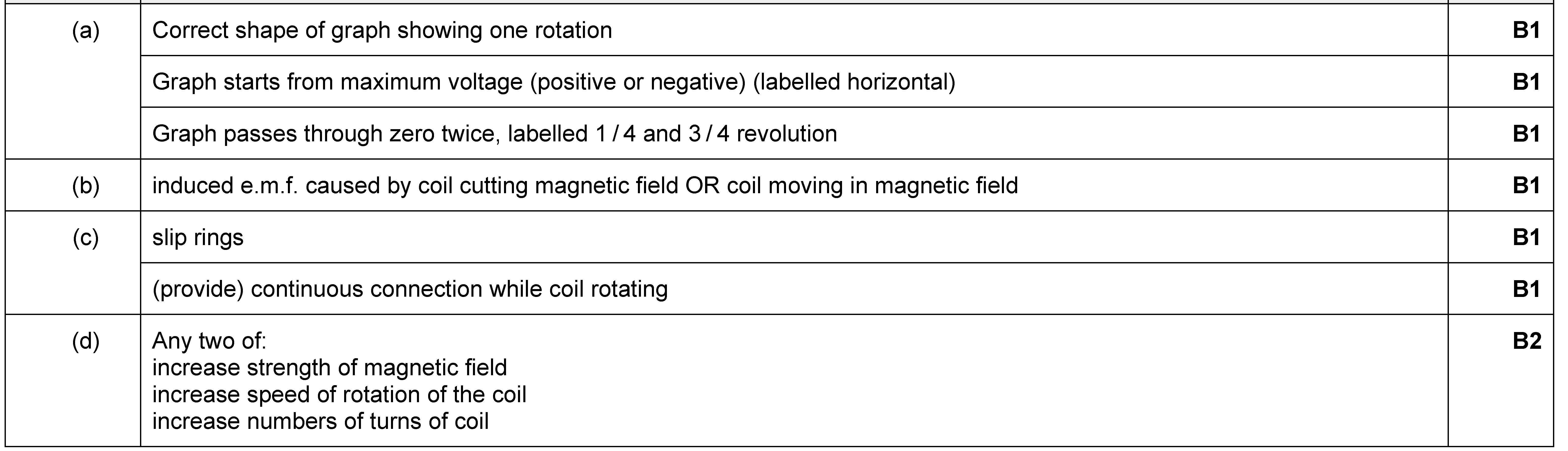 (a) The transformer in Fig. 8.1 is used to convert 240V a.c. to 6V a.c.Fig. 8.1(i) Using the information above, calculate the number of turns on the s...