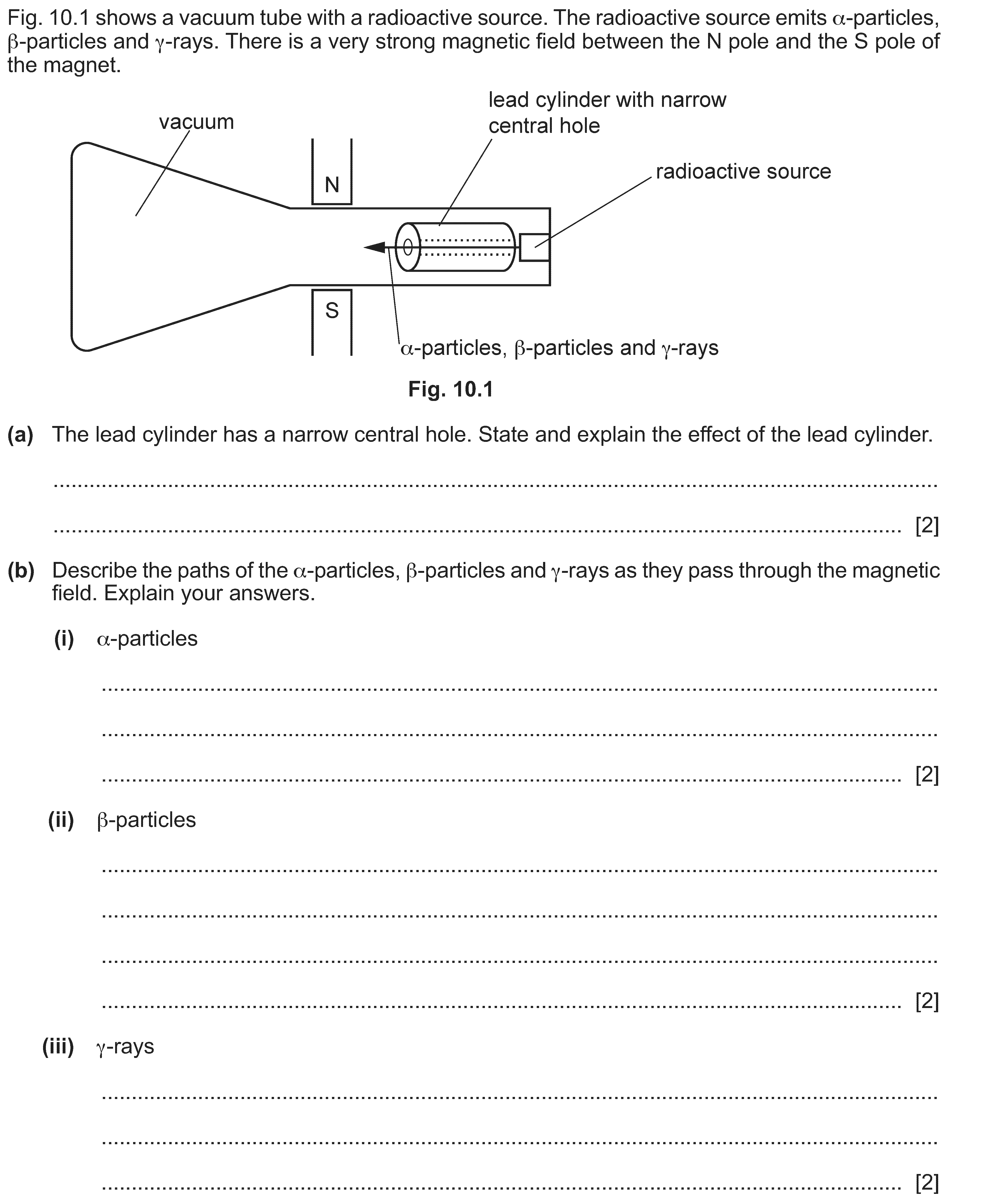 Emissions from a radioactive source pass through a hole in a lead screen and into a magnetic field, as shown in Fig. 10.1. Radiation detectors are p...