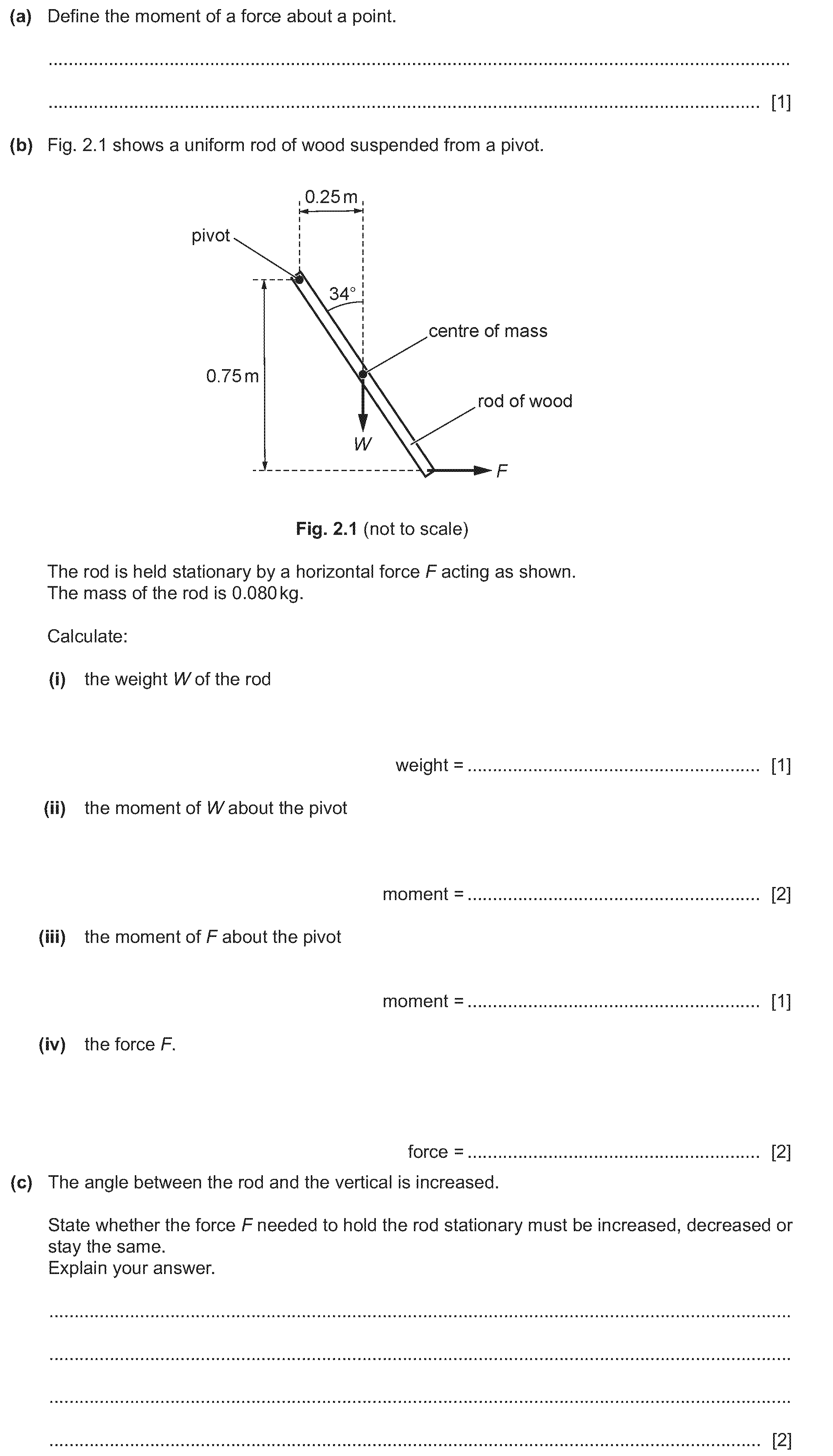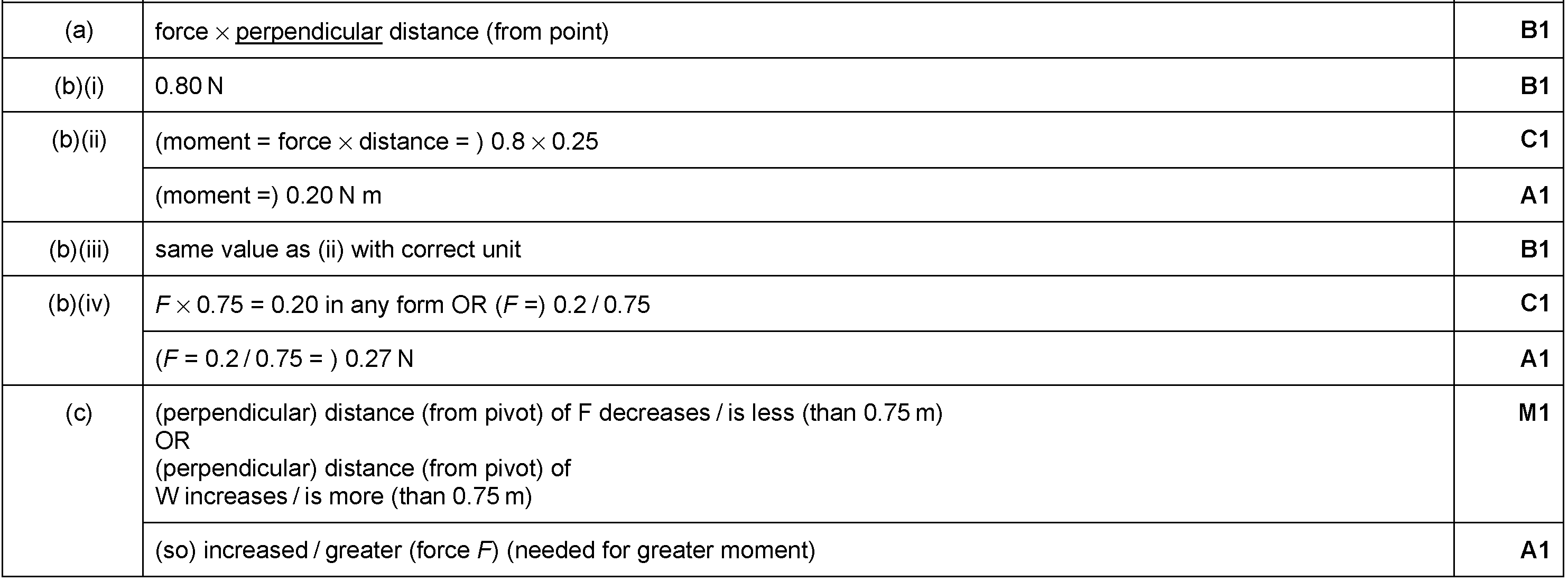 (a) State the two conditions required for the equilibrium of a body acted upon by a number of forces.1. .................................................