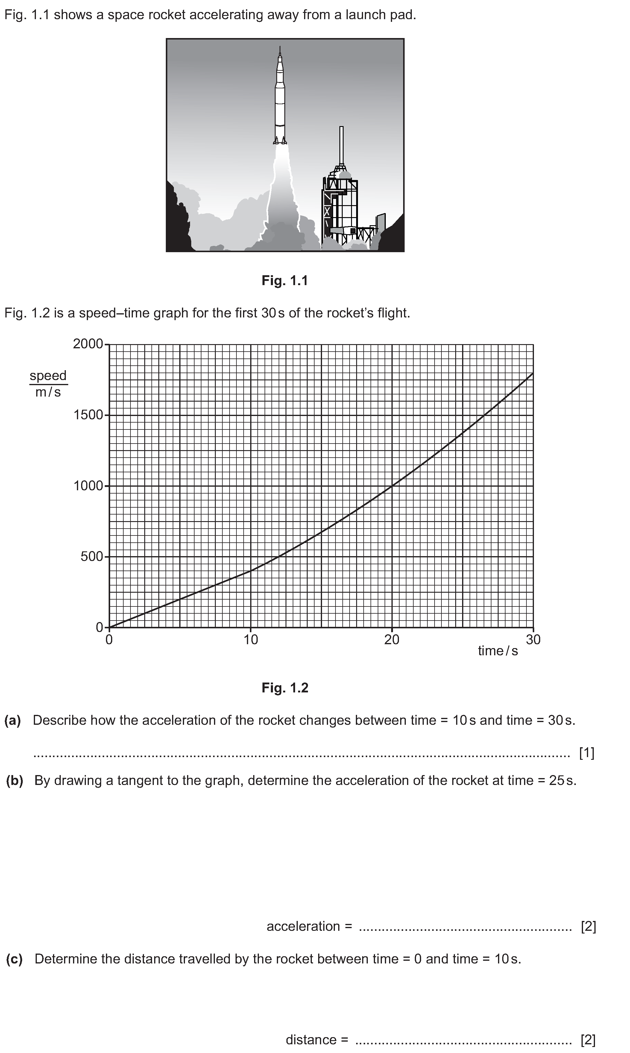 Fig. 1.1 shows the speed/time graph for a car travelling along a straight road. The graph shows how the speed of the car changes as the car passes thr...